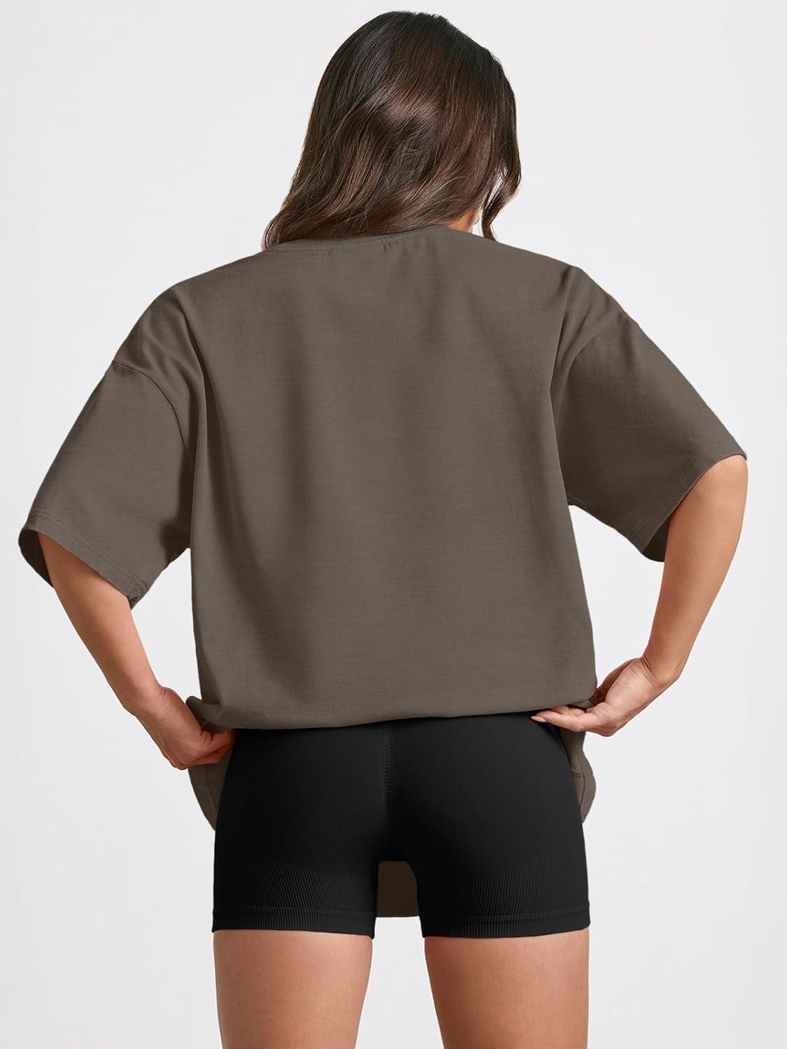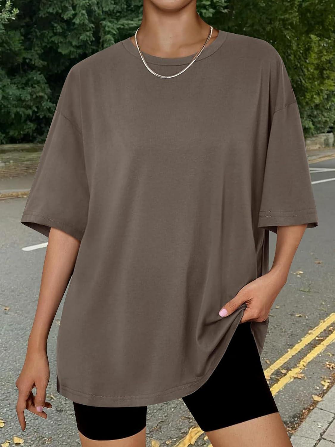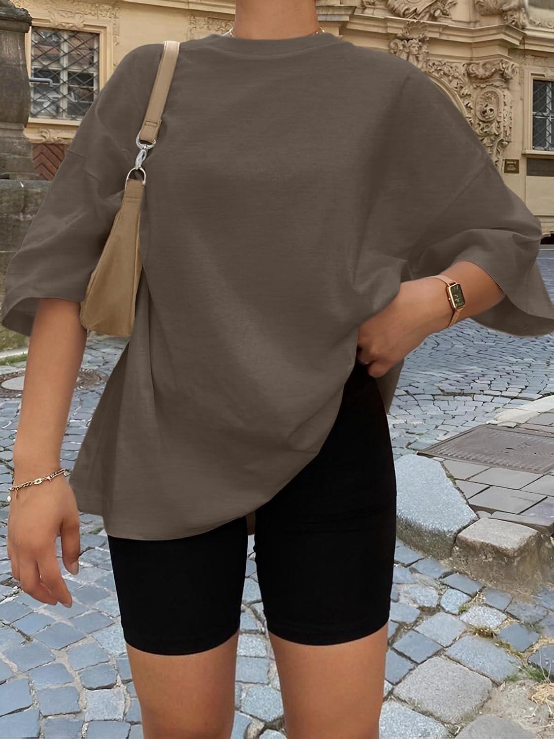 Trendy Queen Womens Oversized Summer T Shirts Plus Size Batwing Cute Casual Tops Short Sleeves Fashion Workout Clothes(Brown)