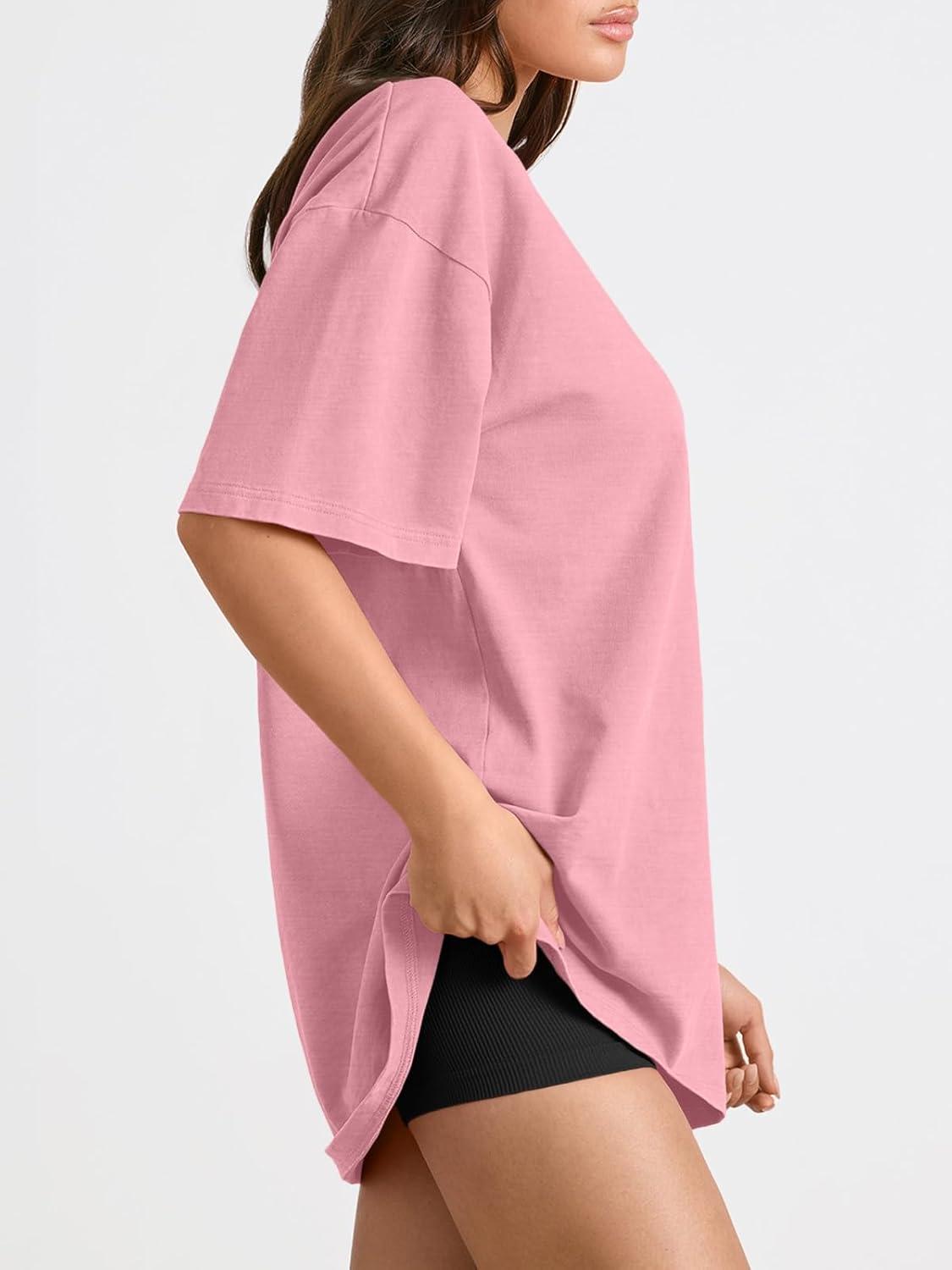 Trendy Queen Womens Oversized Summer T Shirts Plus Size Batwing Cute Casual Tops Short Sleeves Fashion Workout Clothes(Cameopink)