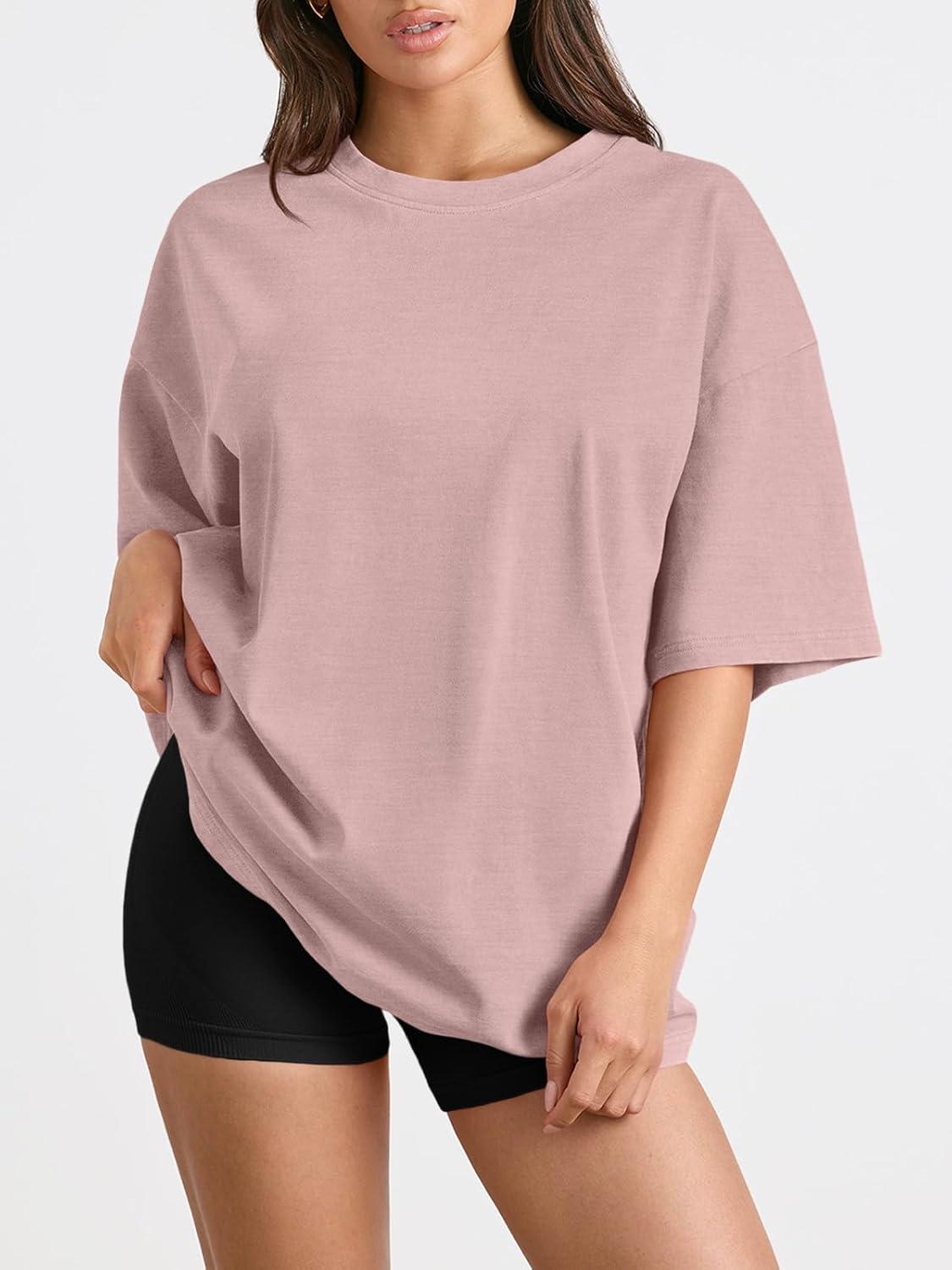 Trendy Queen Womens Oversized Summer T Shirts Plus Size Batwing Cute Casual Tops Short Sleeves Fashion Workout Clothes(Coupledpink)