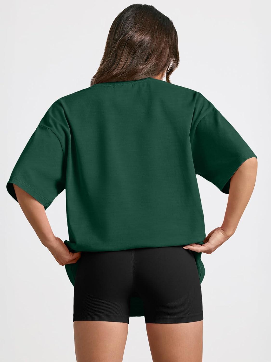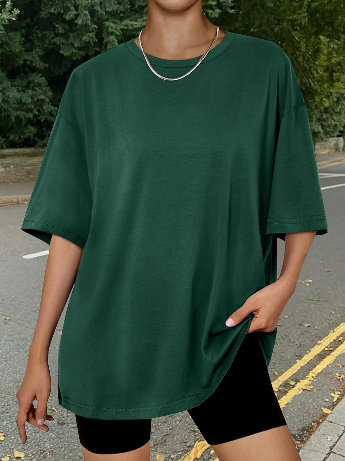 Trendy Queen Womens Oversized Summer T Shirts Plus Size Batwing Cute Casual Tops Short Sleeves Fashion Workout Clothes(Darkgreen)