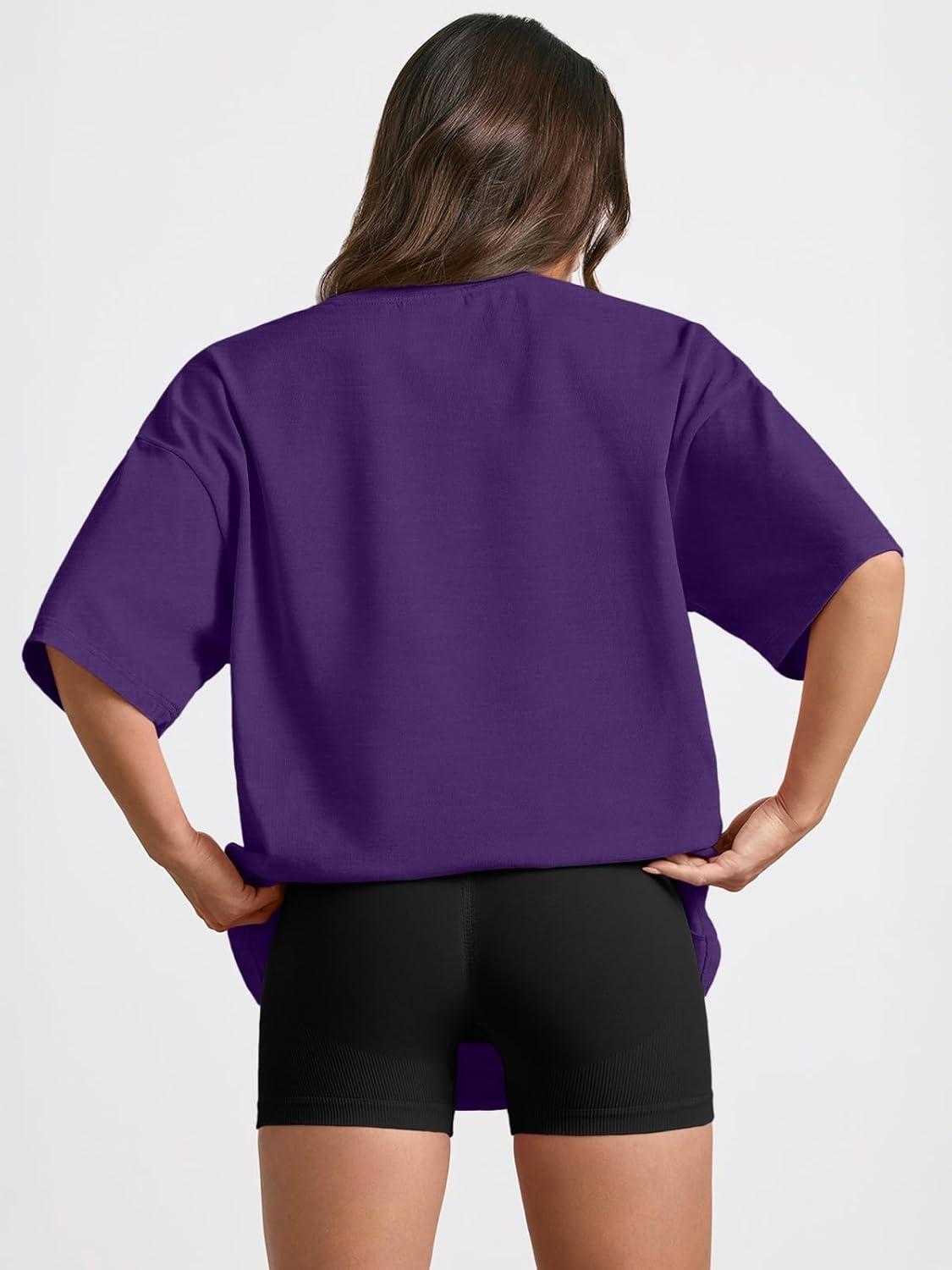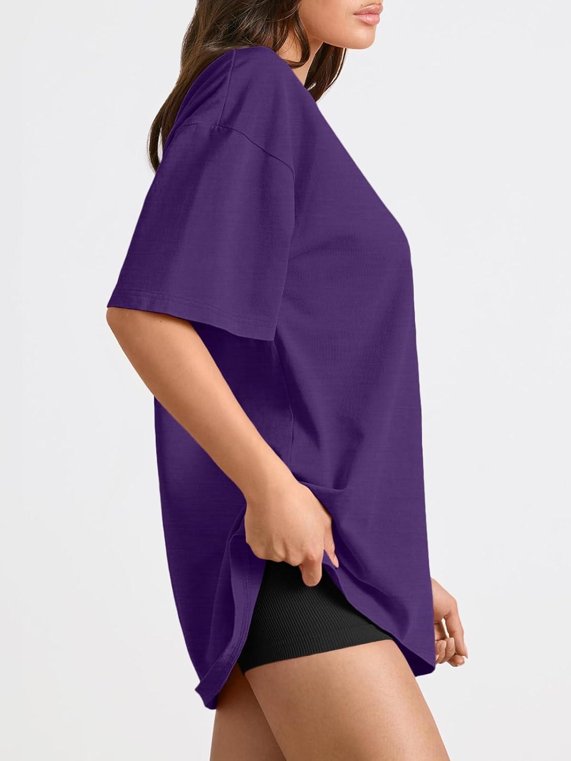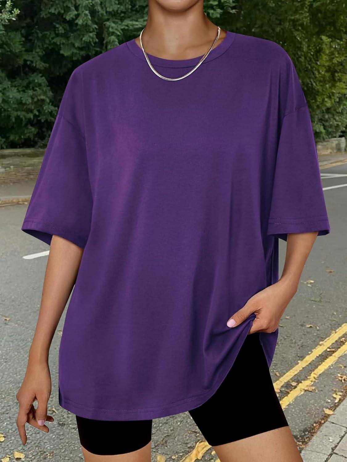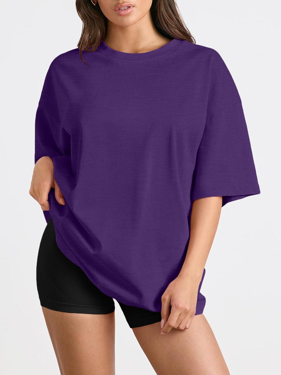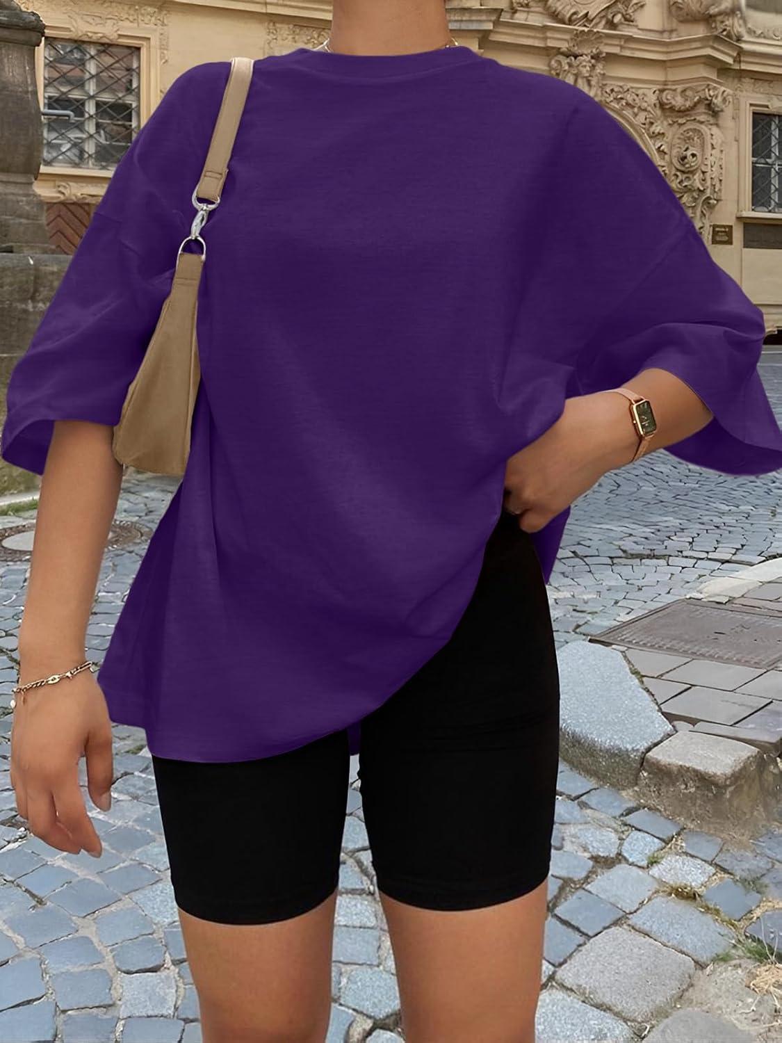 Trendy Queen Womens Oversized Summer T Shirts Plus Size Batwing Cute Casual Tops Short Sleeves Fashion Workout Clothes(Darkpurple)