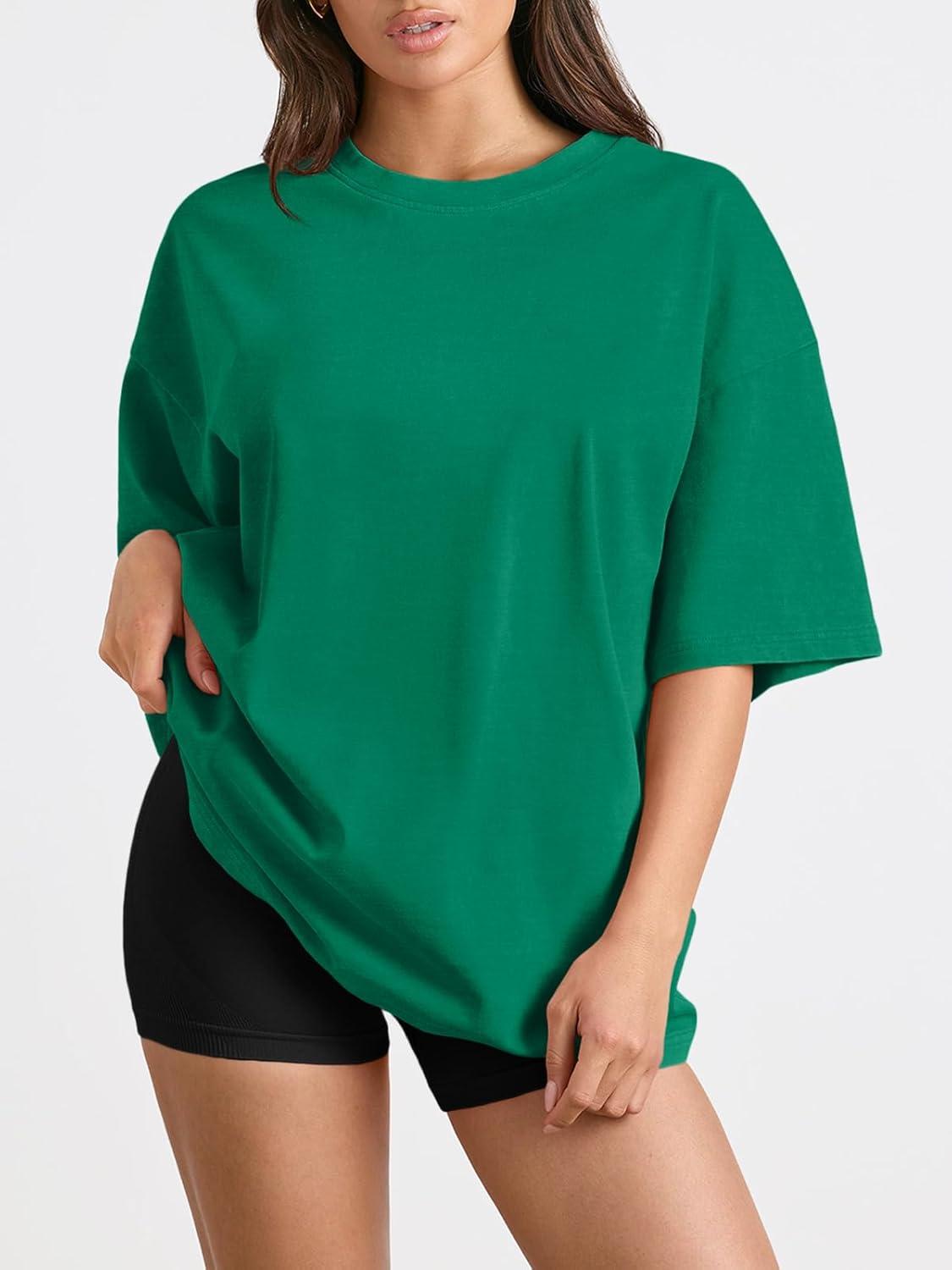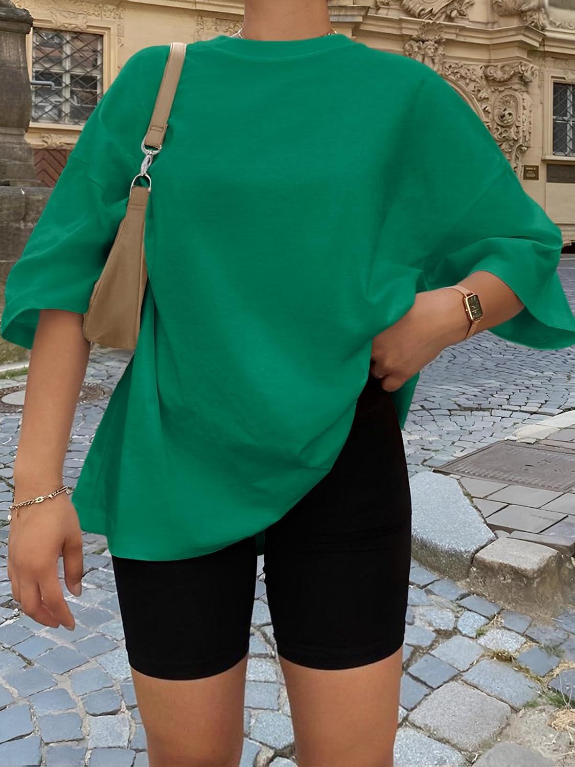 Trendy Queen Womens Oversized Summer T Shirts Plus Size Batwing Cute Casual Tops Short Sleeves Fashion Workout Clothes(Green)