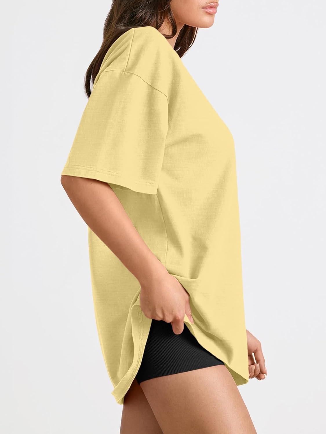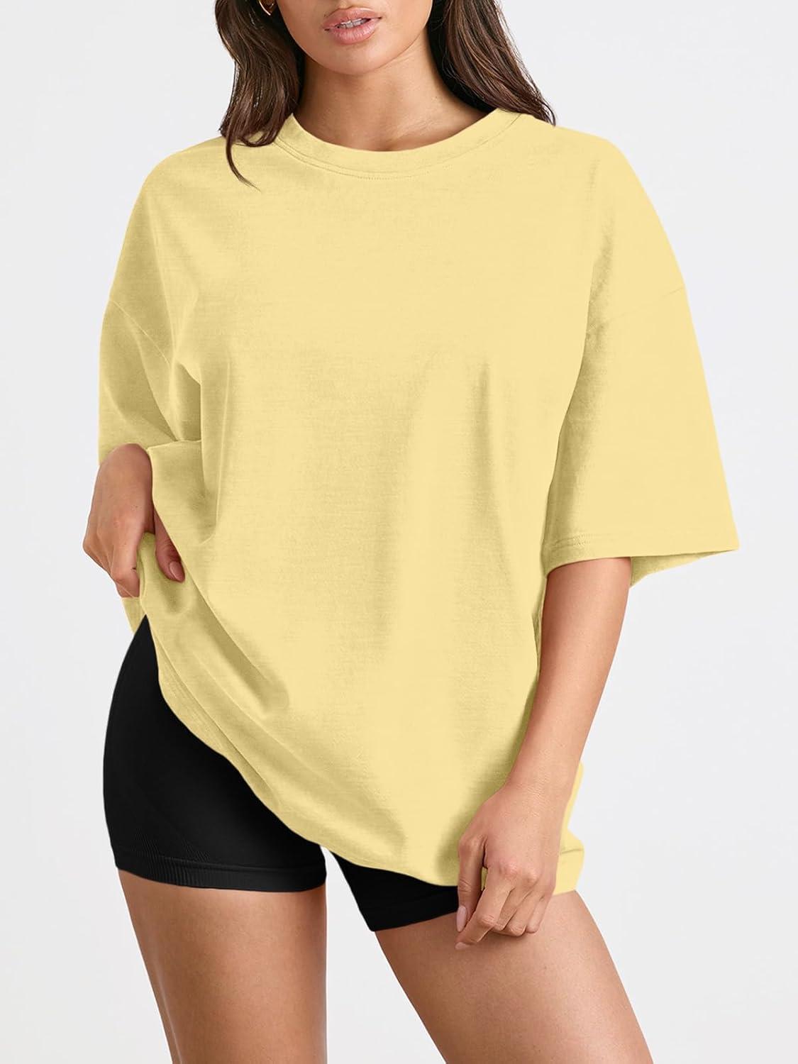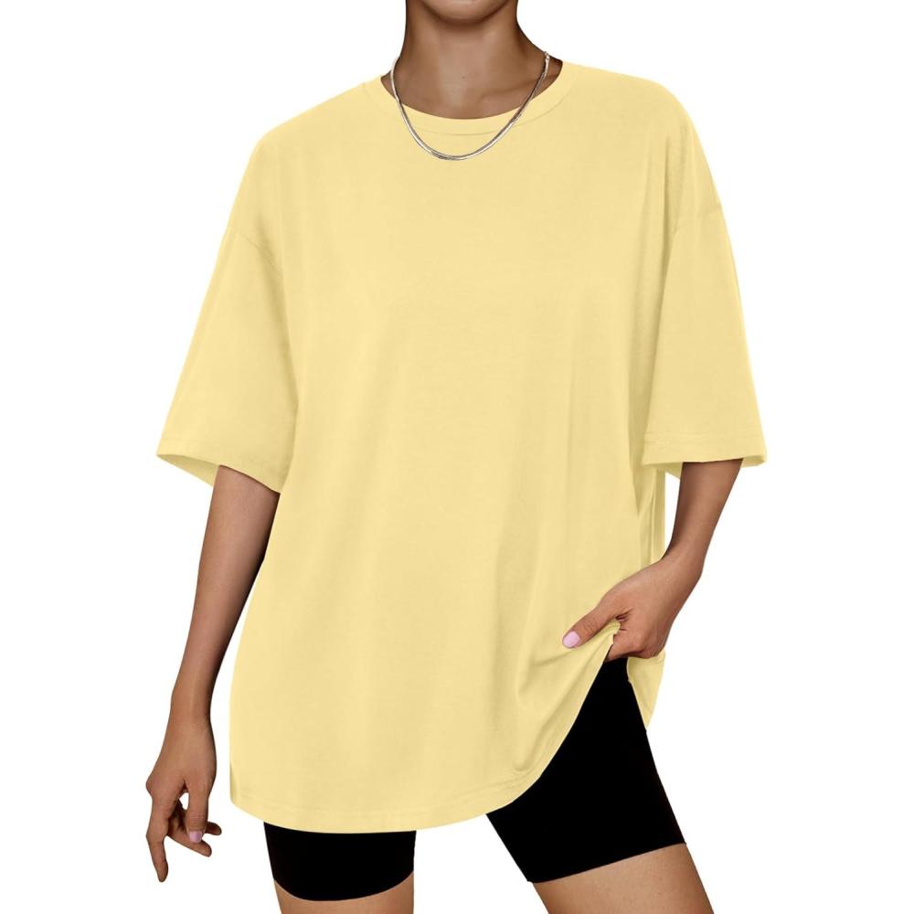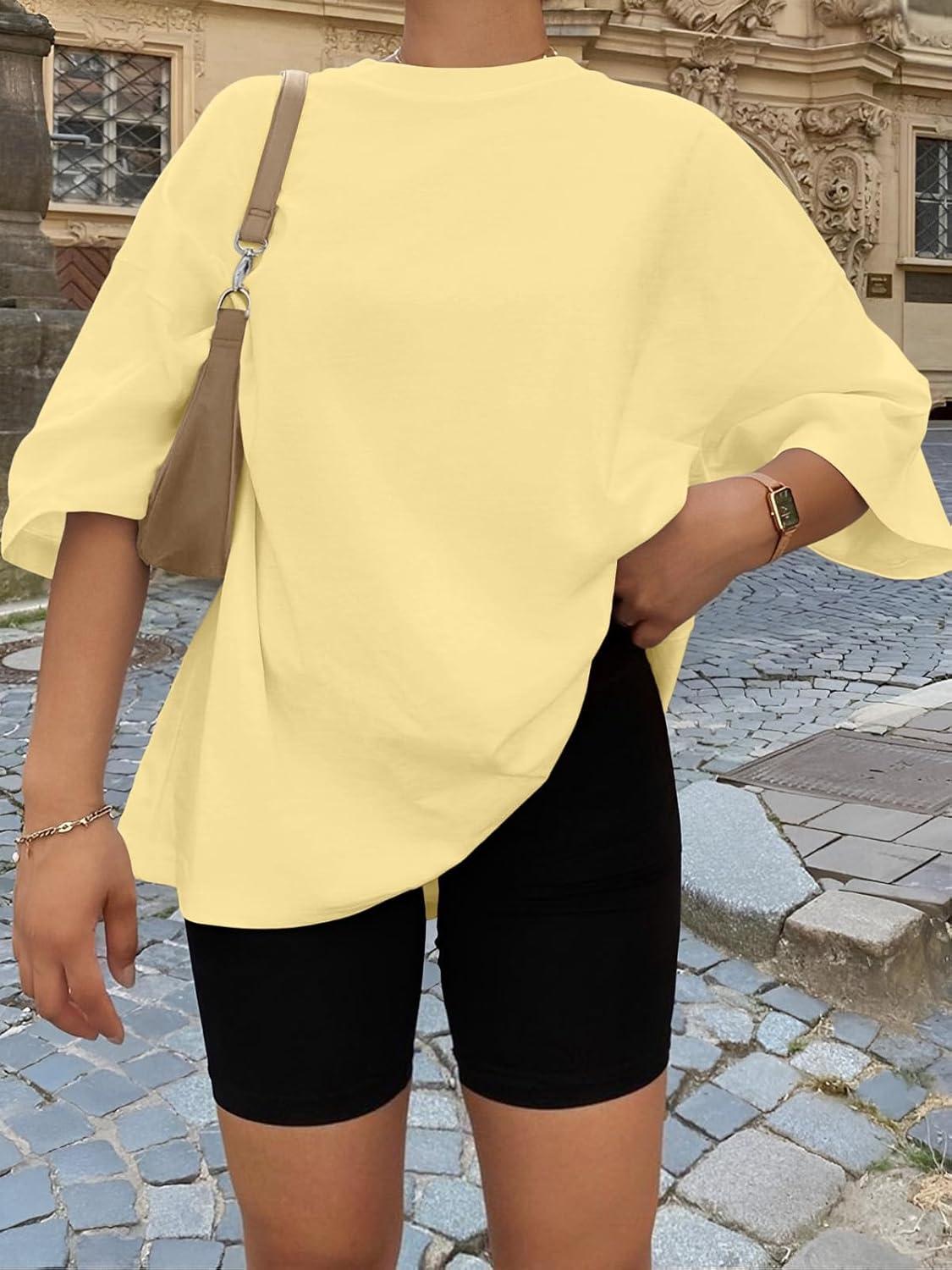Trendy Queen Womens Oversized Summer T Shirts Plus Size Batwing Cute Casual Tops Short Sleeves Fashion Workout Clothes(Lemonyellow)