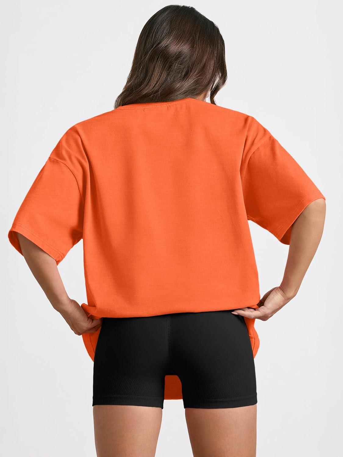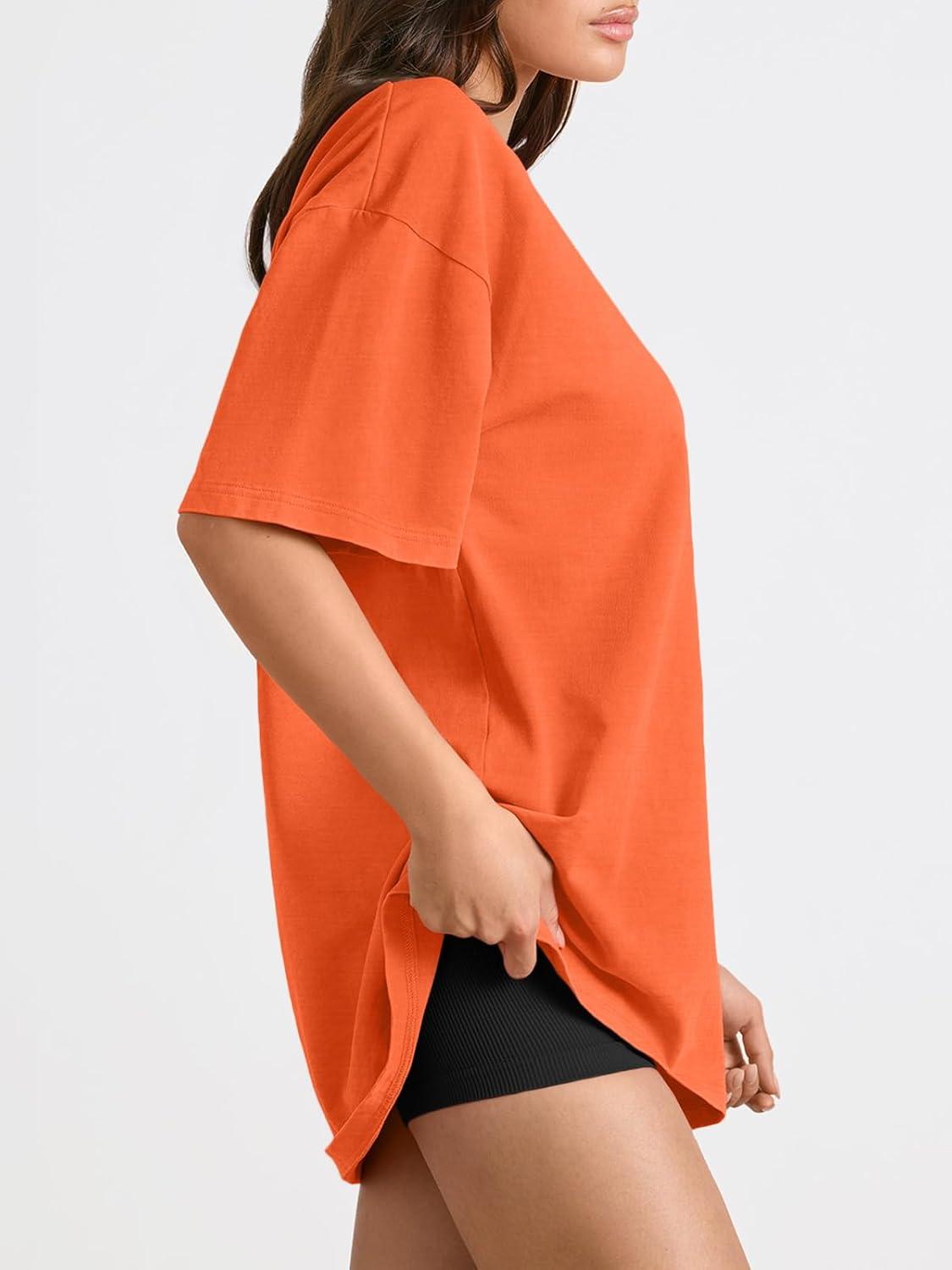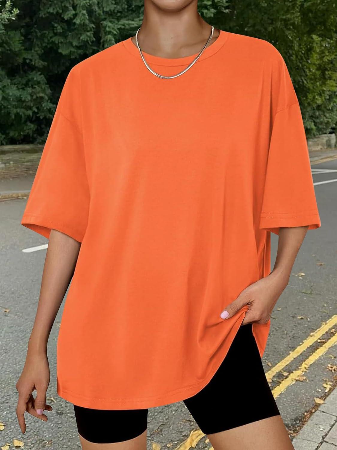 Trendy Queen Womens Oversized Summer T Shirts Plus Size Batwing Cute Casual Tops Short Sleeves Fashion Workout Clothes(Orange)