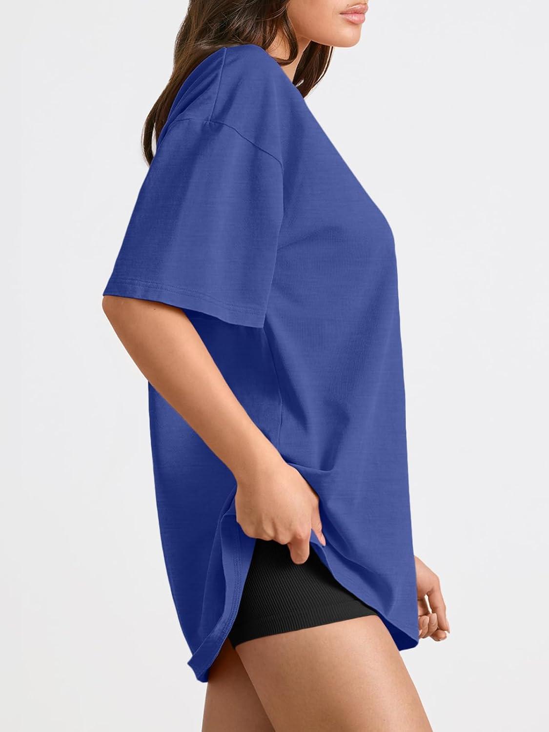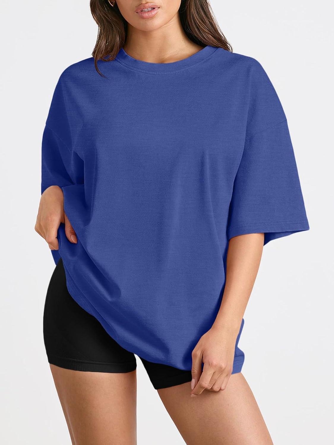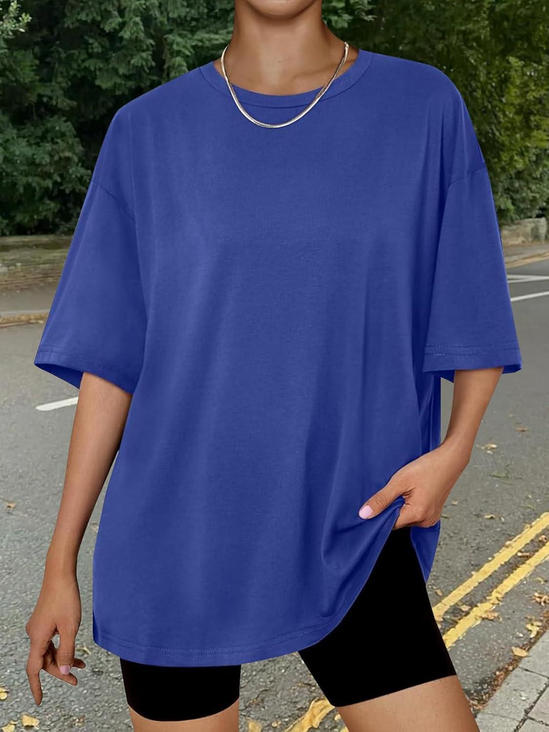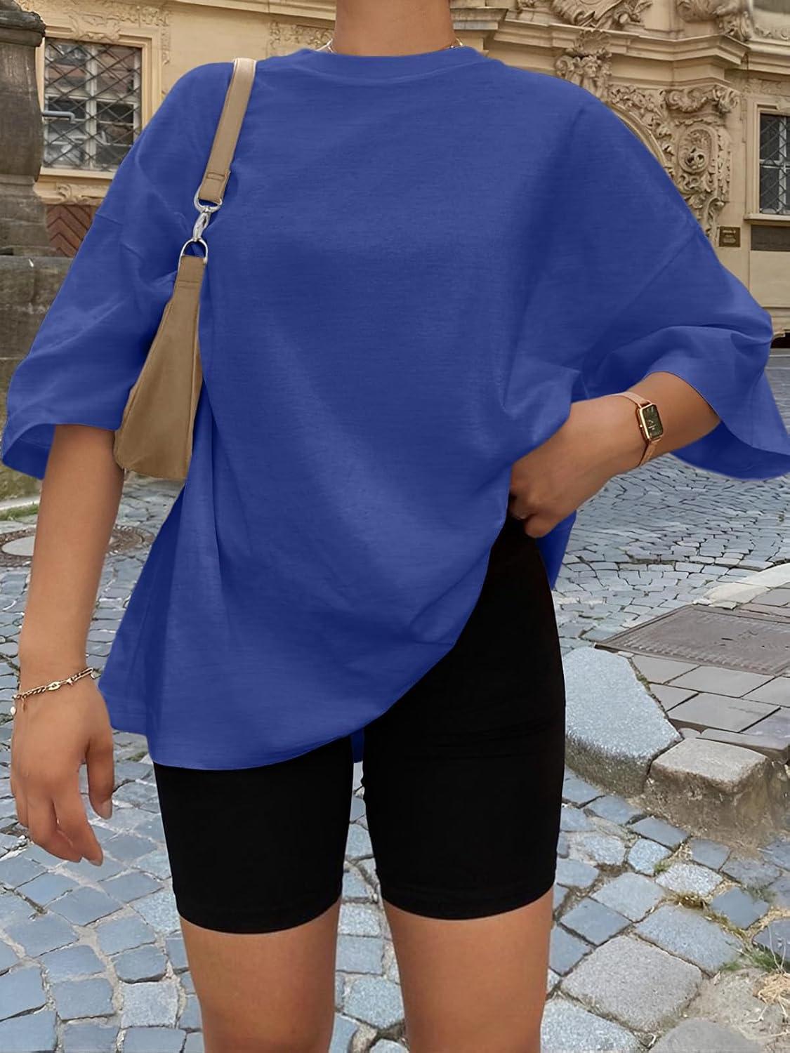 Trendy Queen Womens Oversized Summer T Shirts Plus Size Batwing Cute Casual Tops Short Sleeves Fashion Workout Clothes(Royalblue)