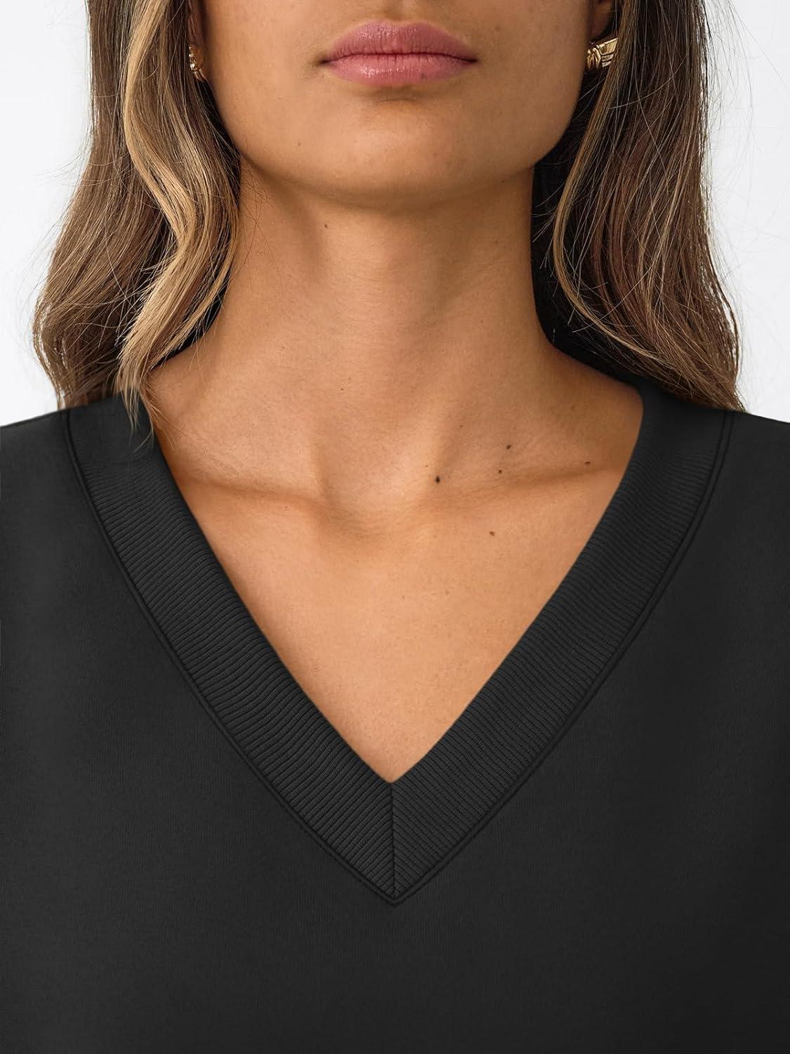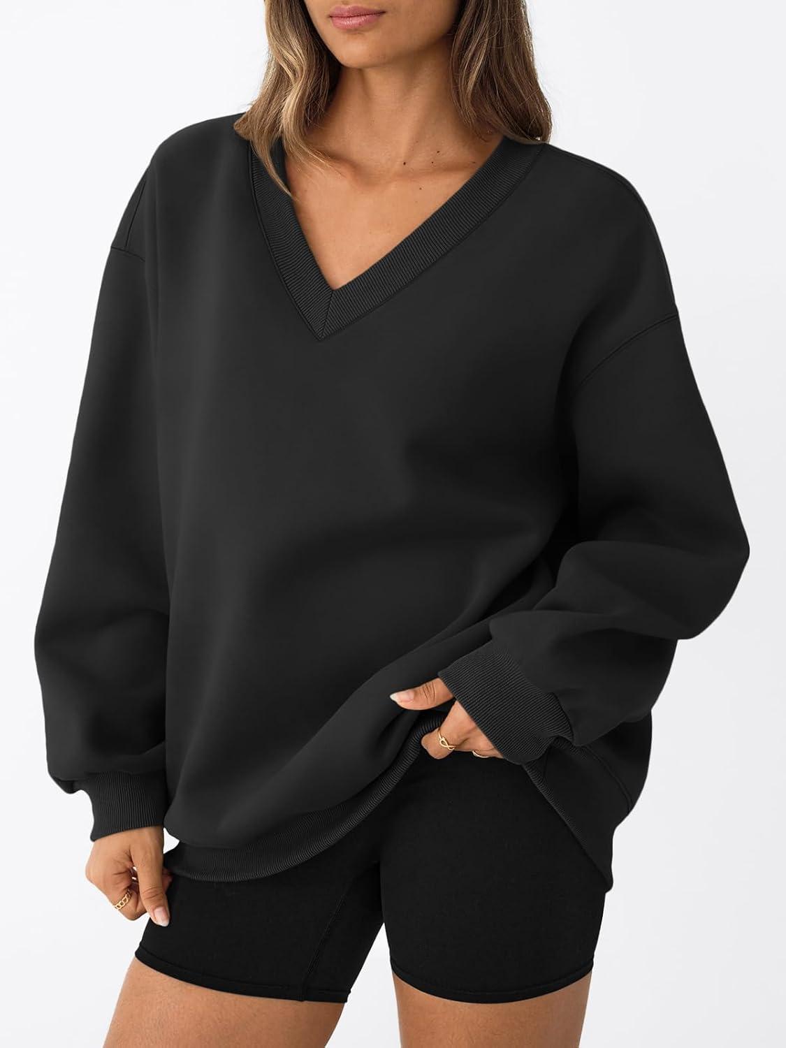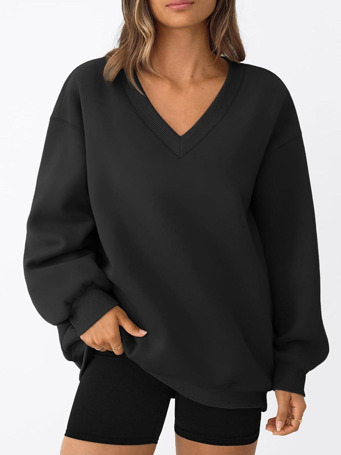 Trendy Queen Womens Oversized Sweatshirts Fall Fashion V Neck Hoodies Loose Fit Winter Outfits Teen Girl Clothes 2025(Black)