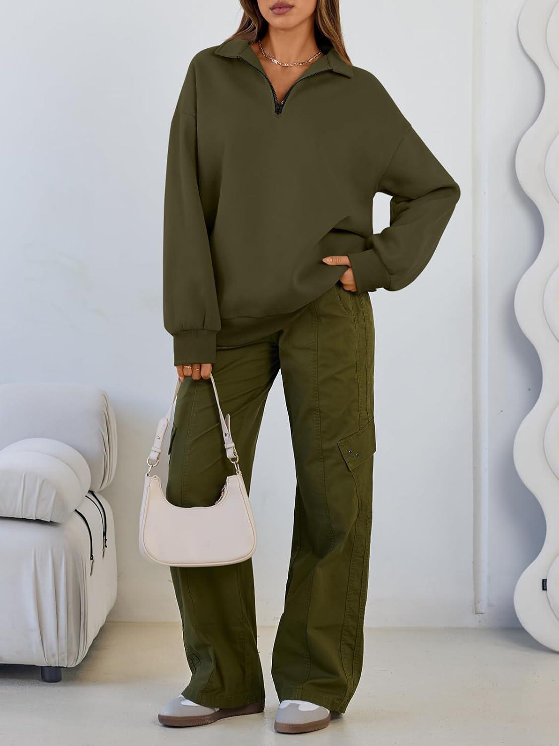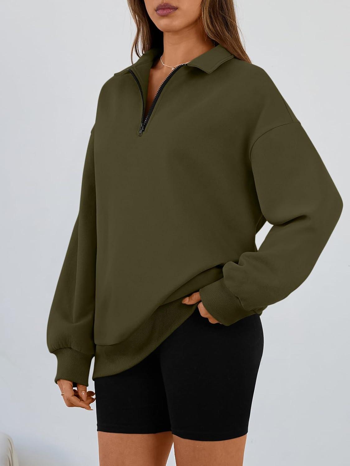 Trendy Queen Womens Oversized Sweatshirts Fall Sweaters Fashion Hoodies Half Zip Pullover Long Sleeve Shirts Clothes(Armygreen)