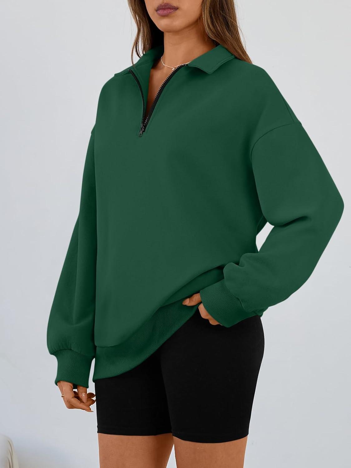 Trendy Queen Womens Oversized Sweatshirts Fall Sweaters Fashion Hoodies Half Zip Pullover Long Sleeve Shirts Clothes(Darkgreen)