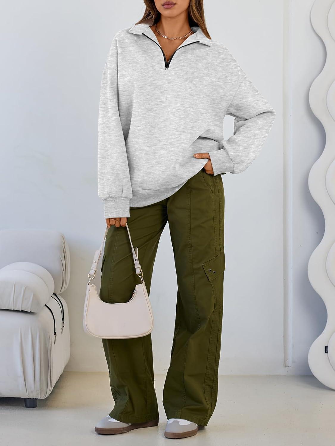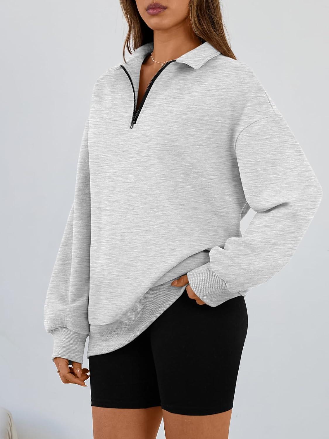 Trendy Queen Womens Oversized Sweatshirts Fall Sweaters Fashion Hoodies Half Zip Pullover Long Sleeve Shirts Clothes(Grey)