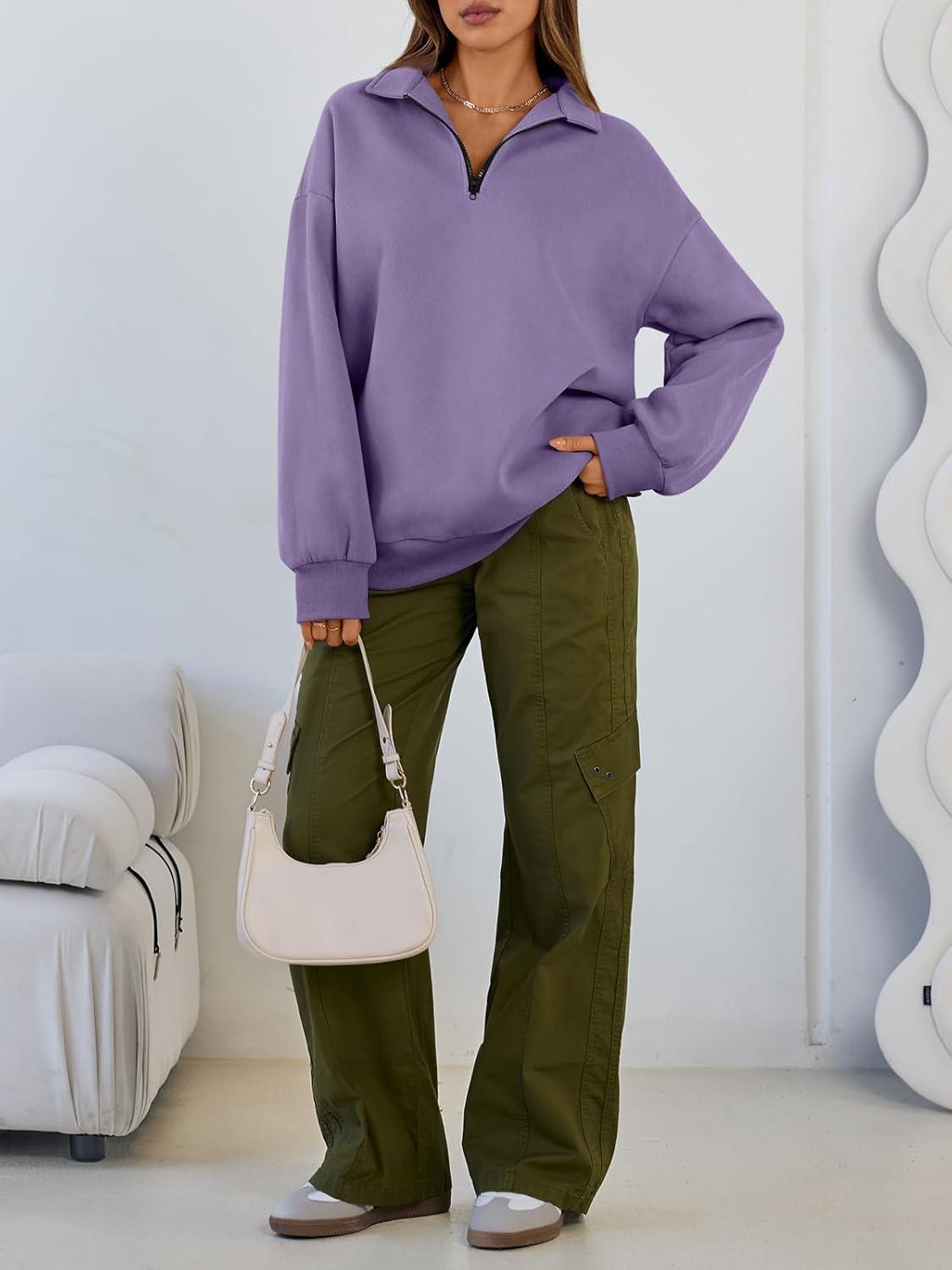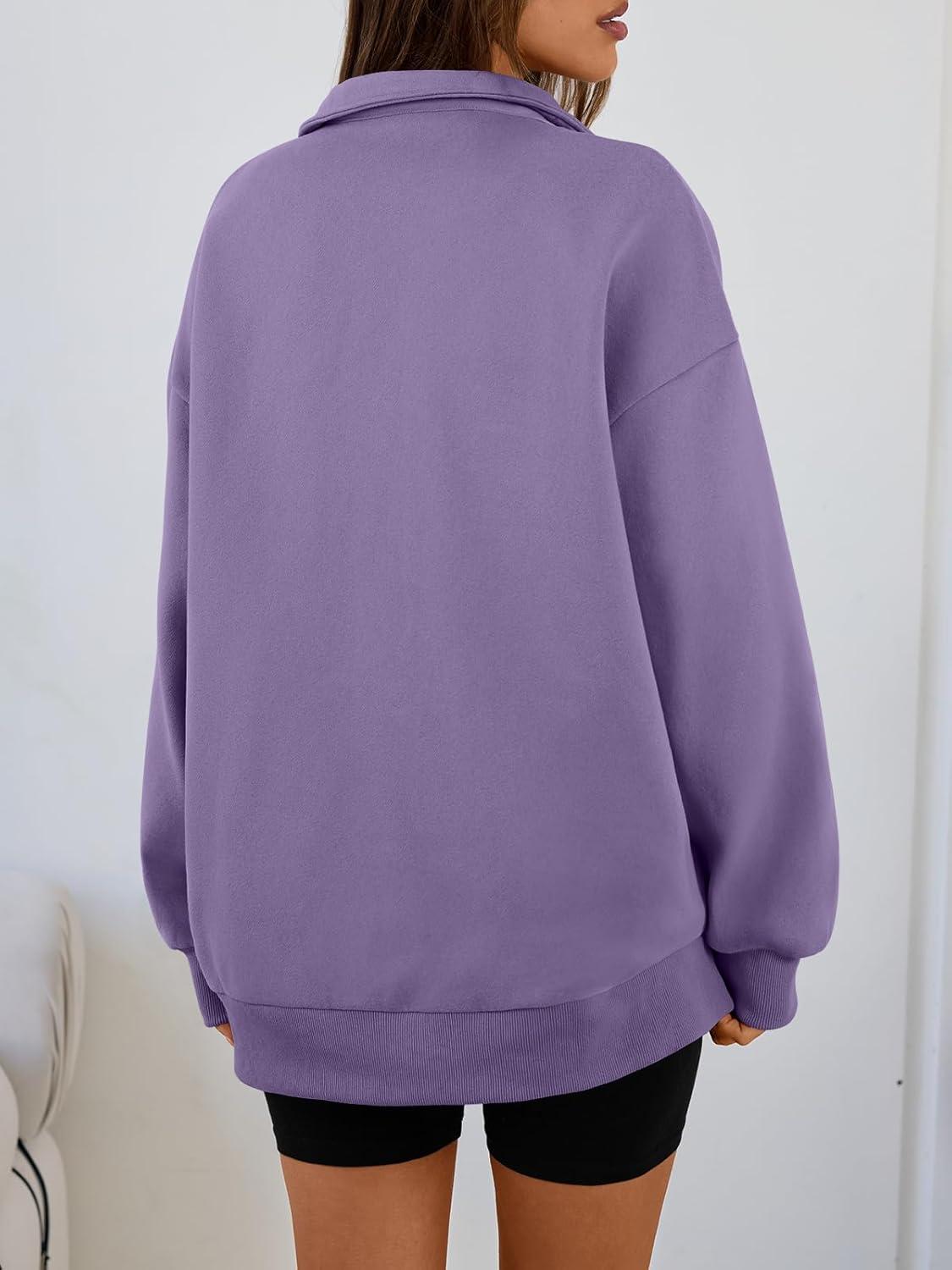 Trendy Queen Womens Oversized Sweatshirts Fall Sweaters Fashion Hoodies Half Zip Pullover Long Sleeve Shirts Clothes(Purple)