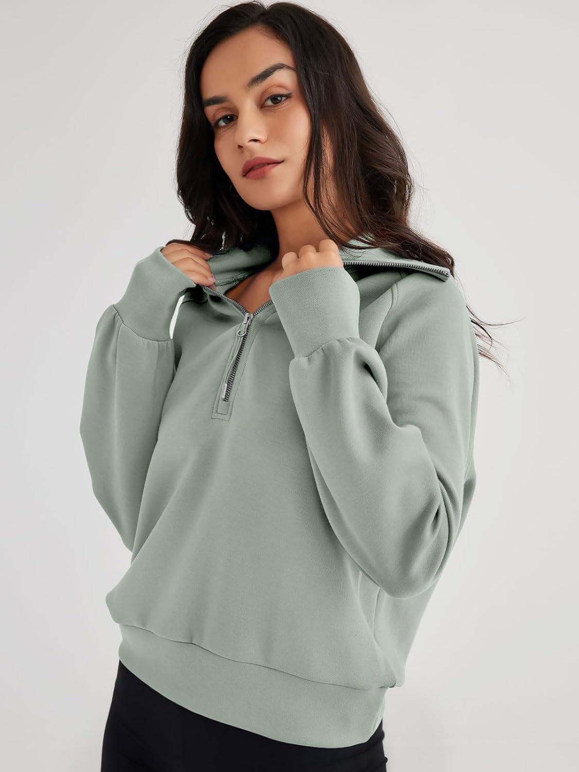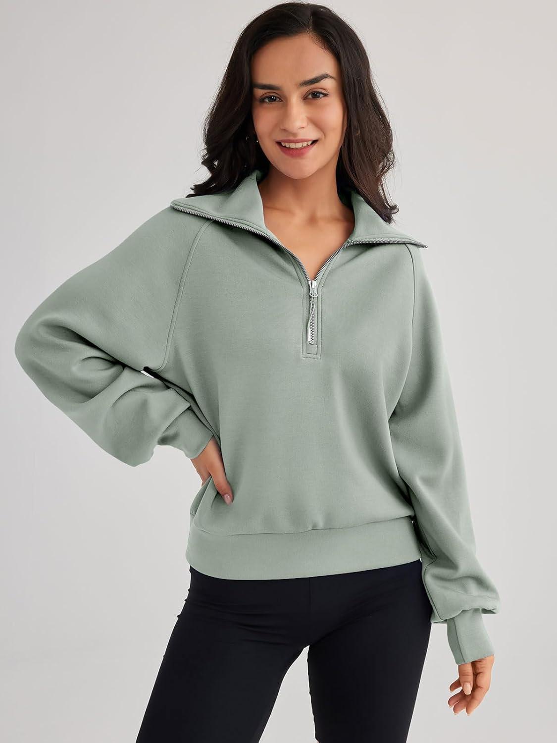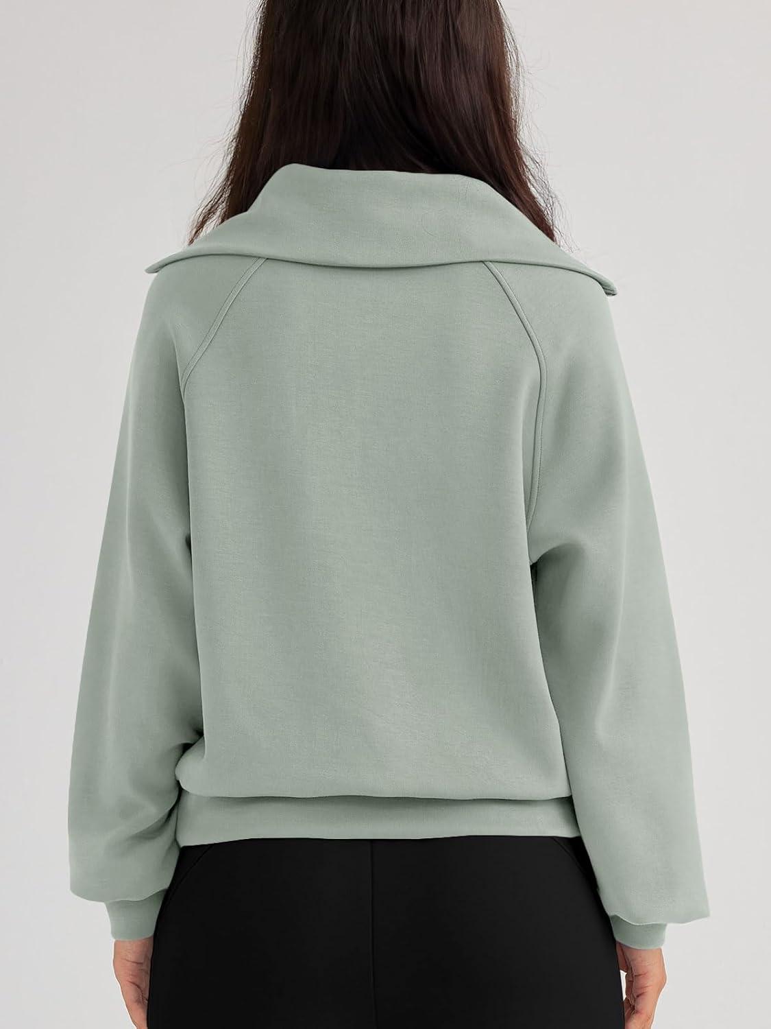 Trendy Queen Womens Oversized Sweatshirts Half Zip Pullover Fall Long Sleeve Quarter Zip Hoodies Teen Girls Y2K Clothes(Lightgreen)