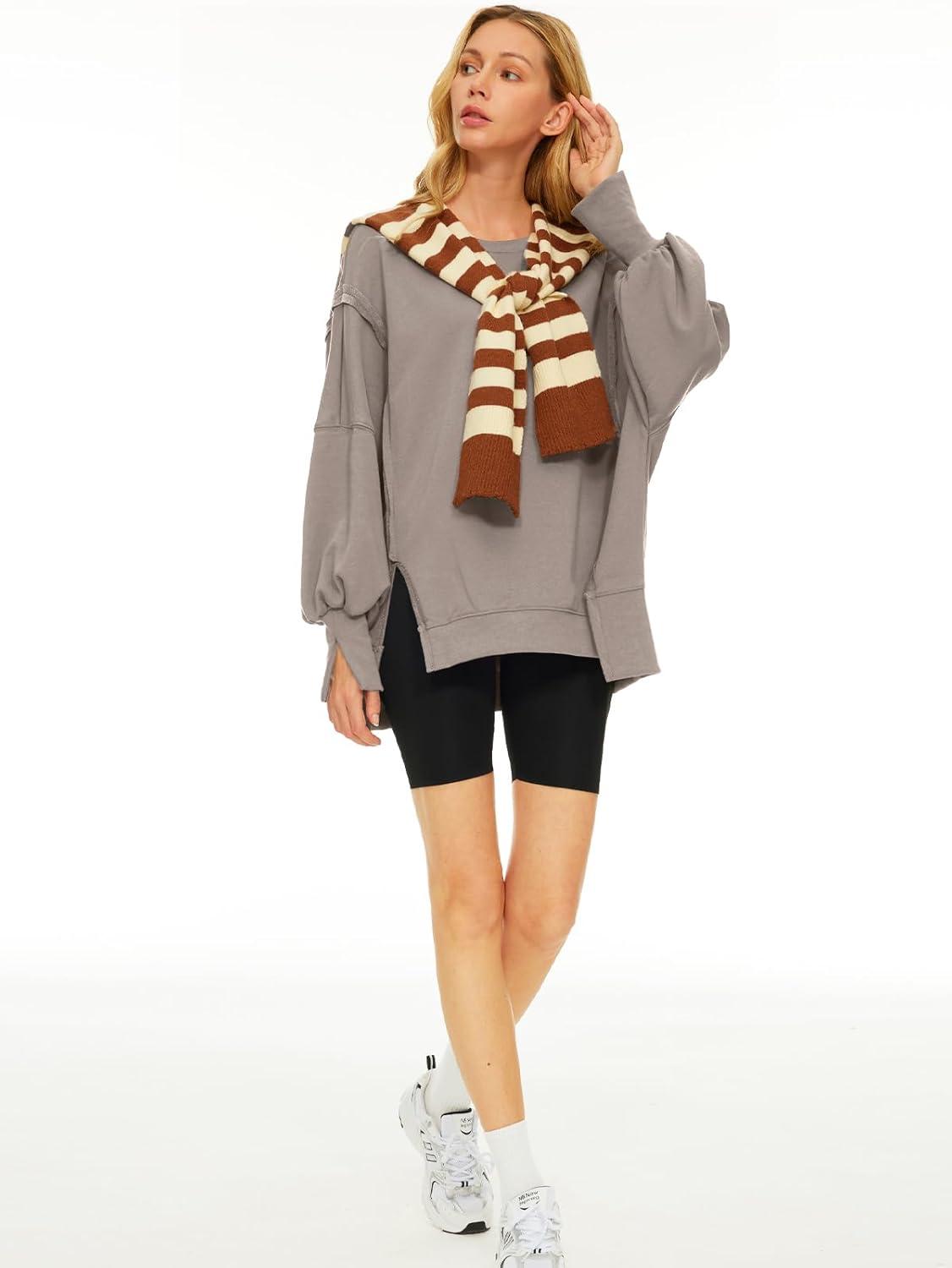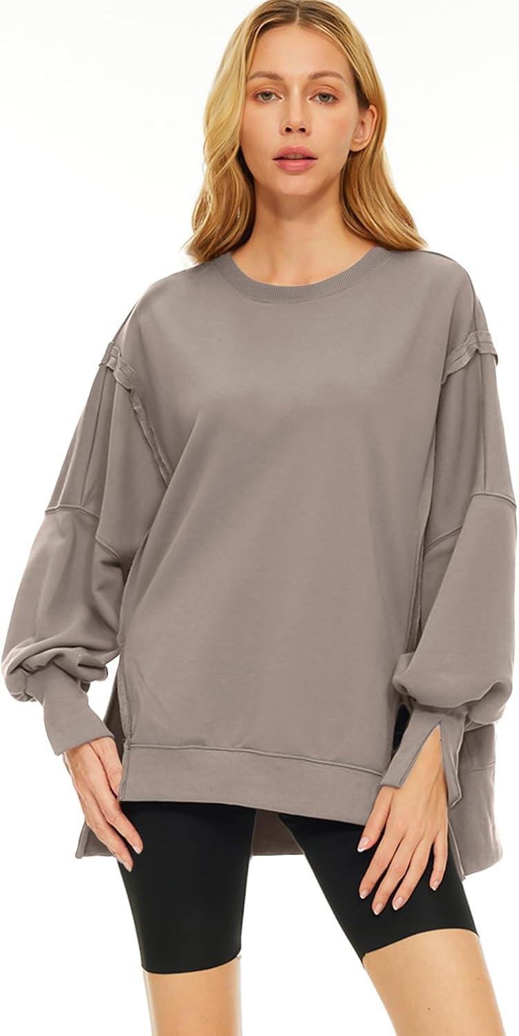Trendy Queen Womens Oversized Sweatshirts Hoodies Crewneck Shirts Fall Outfits Teen Girls Y2k Winter Clothes(Coffeegrey)