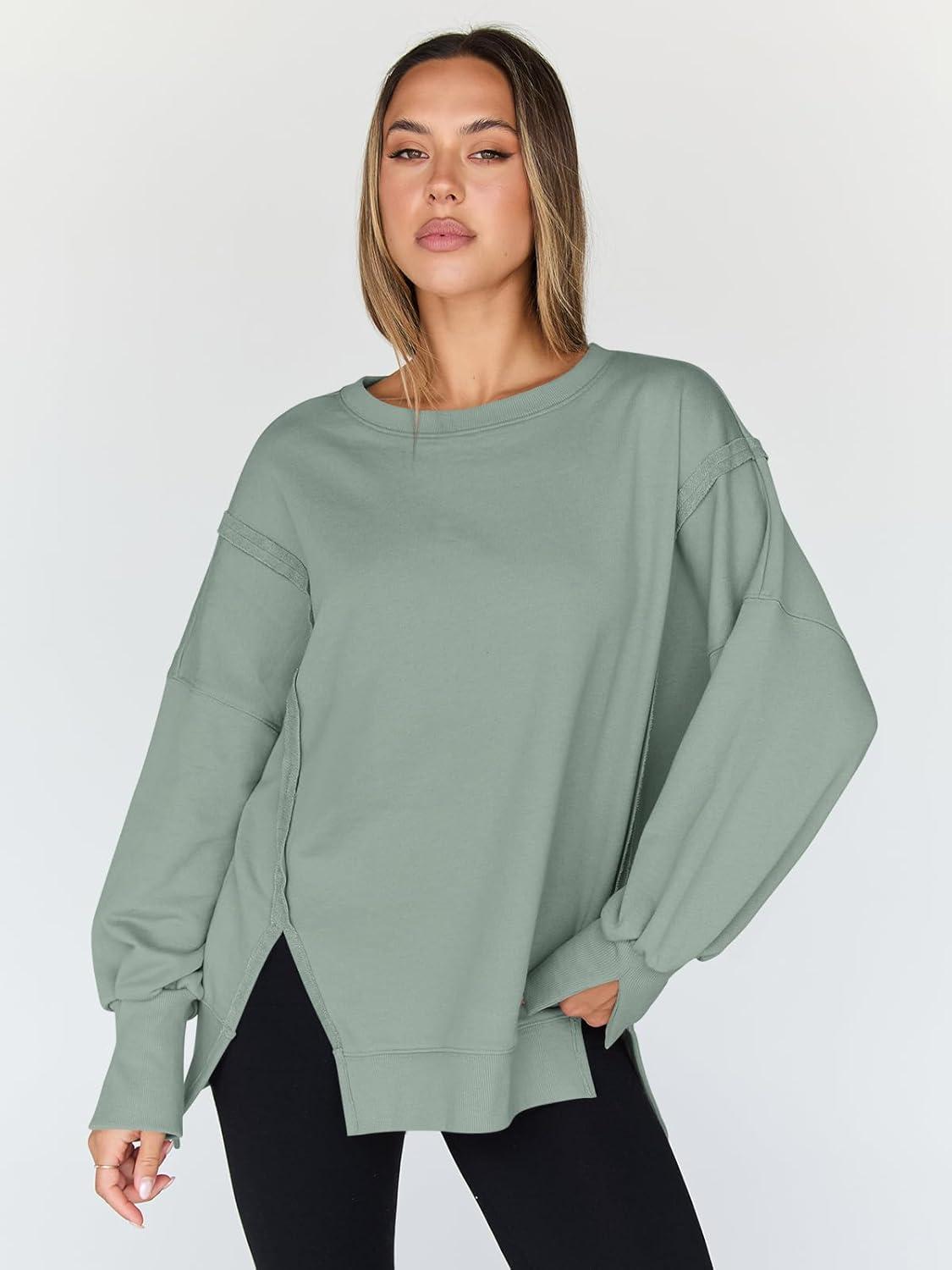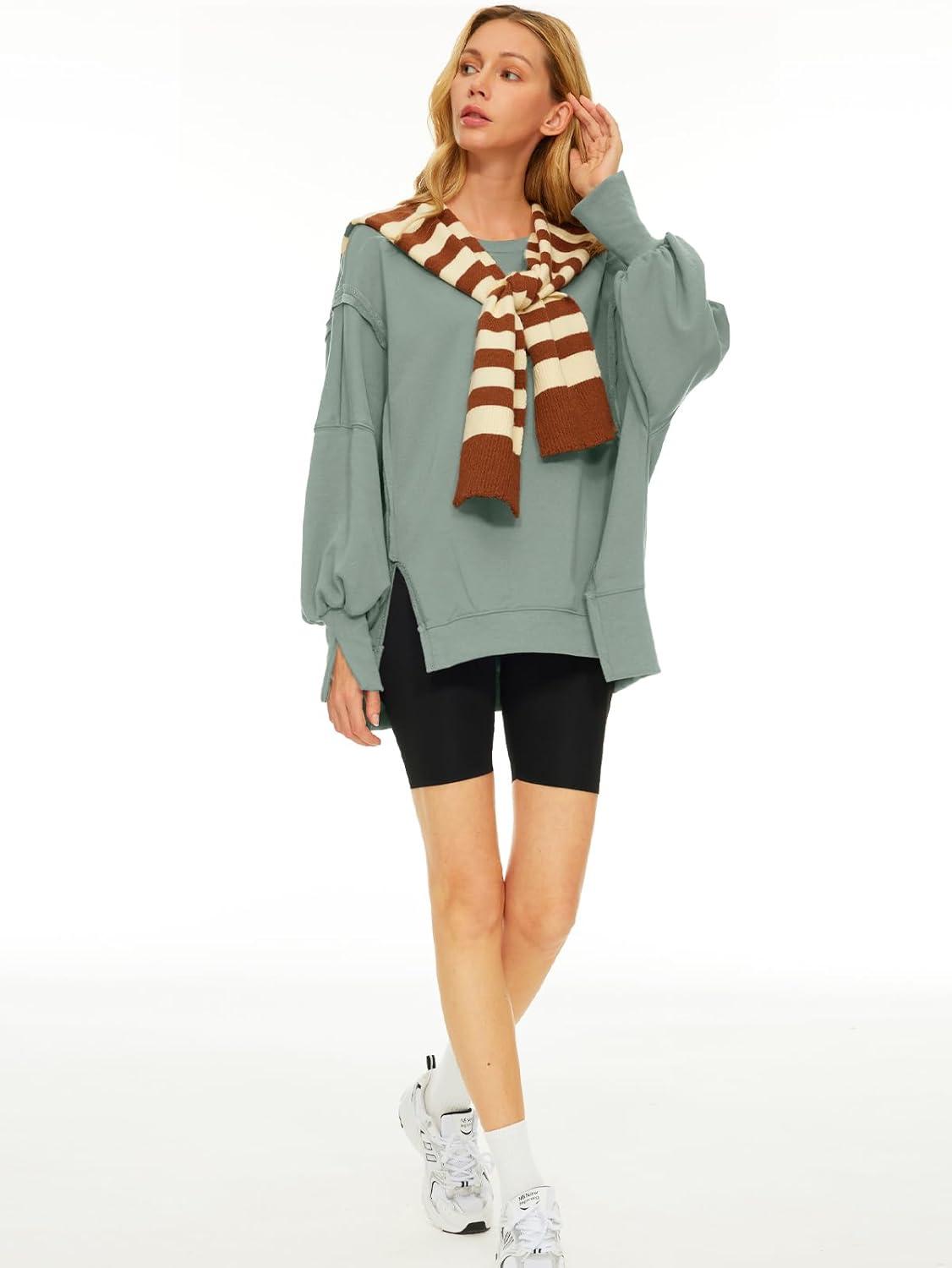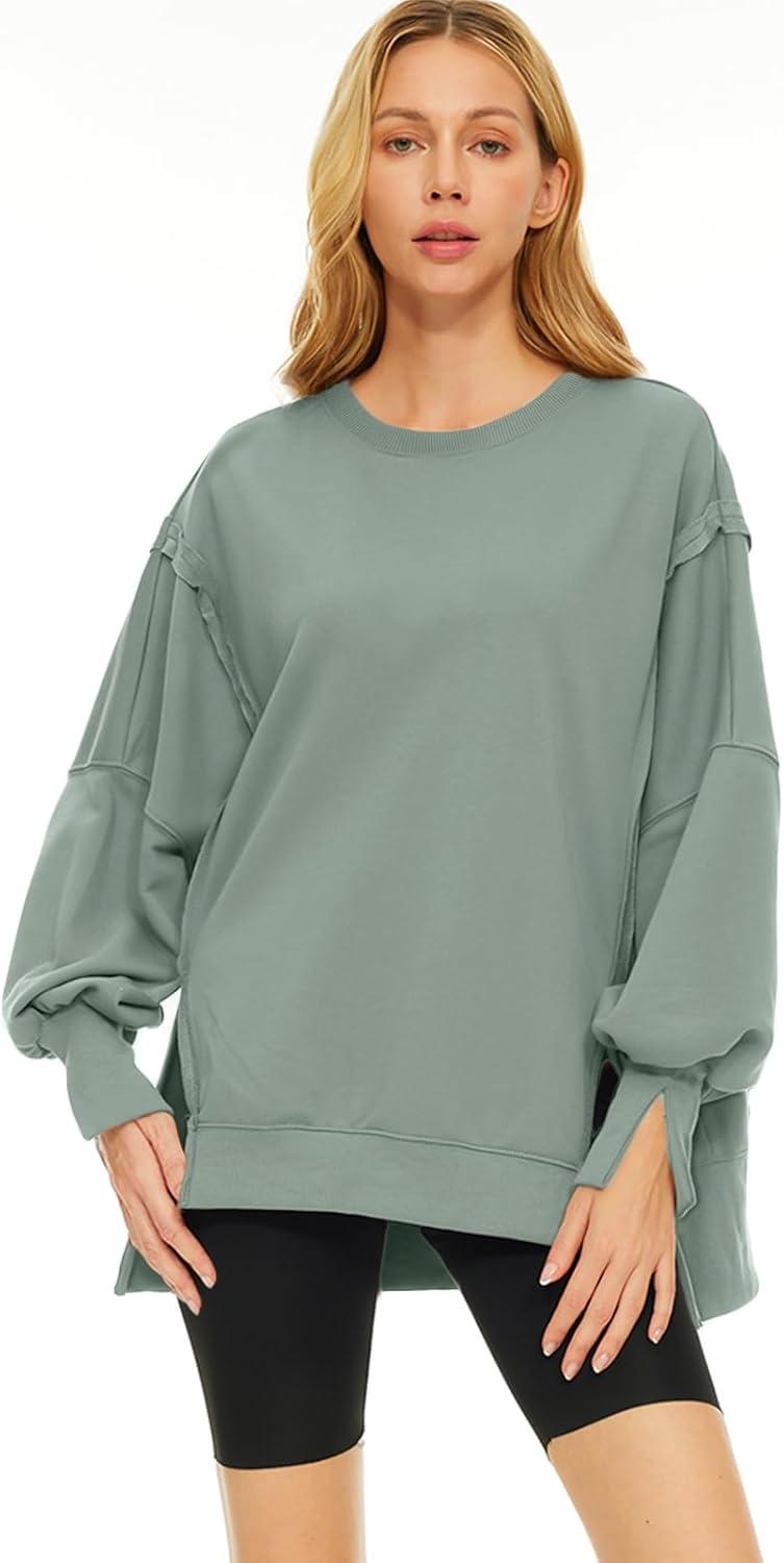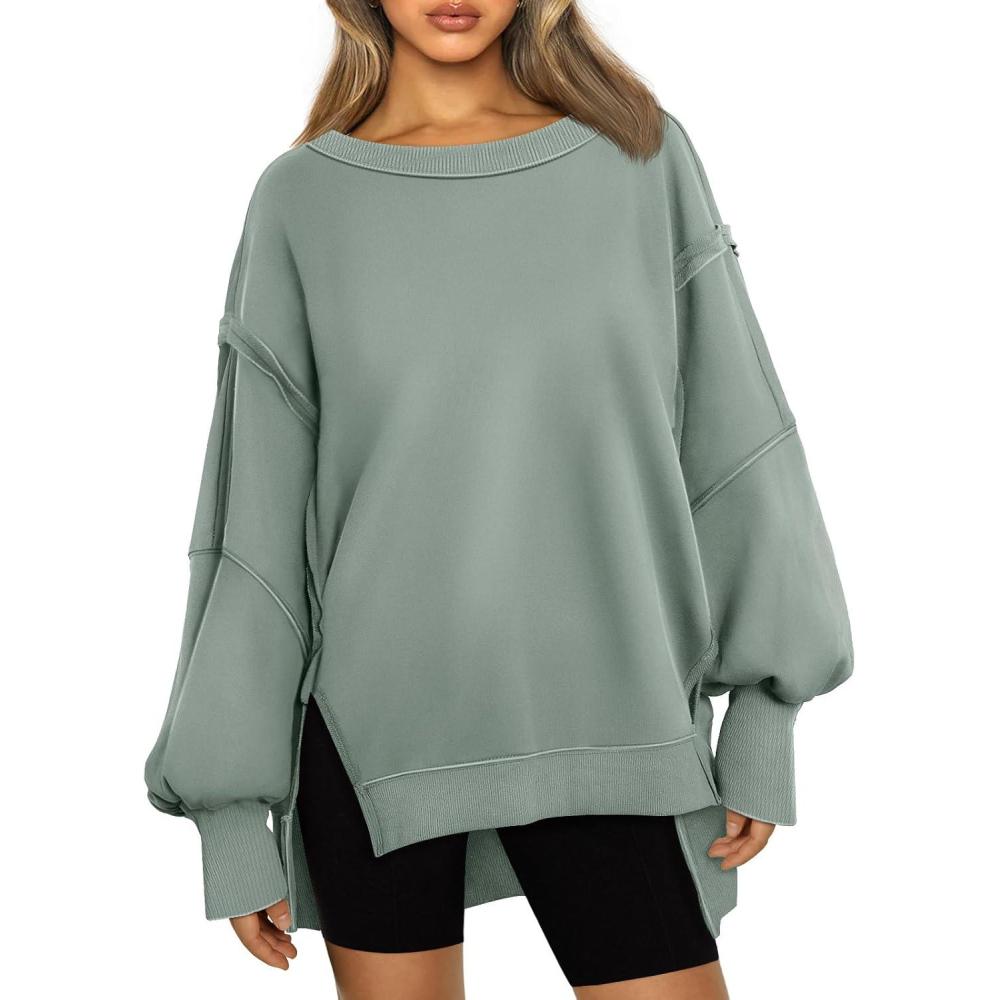 Trendy Queen Womens Oversized Sweatshirts Hoodies Crewneck Shirts Fall Outfits Teen Girls Y2k Winter Clothes(Lightgreen)