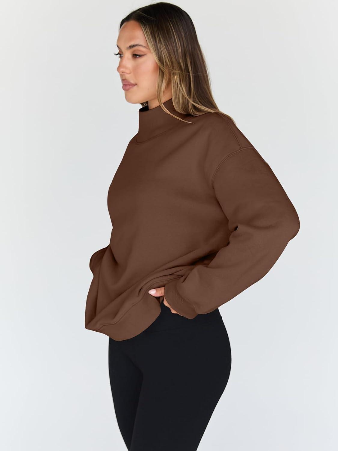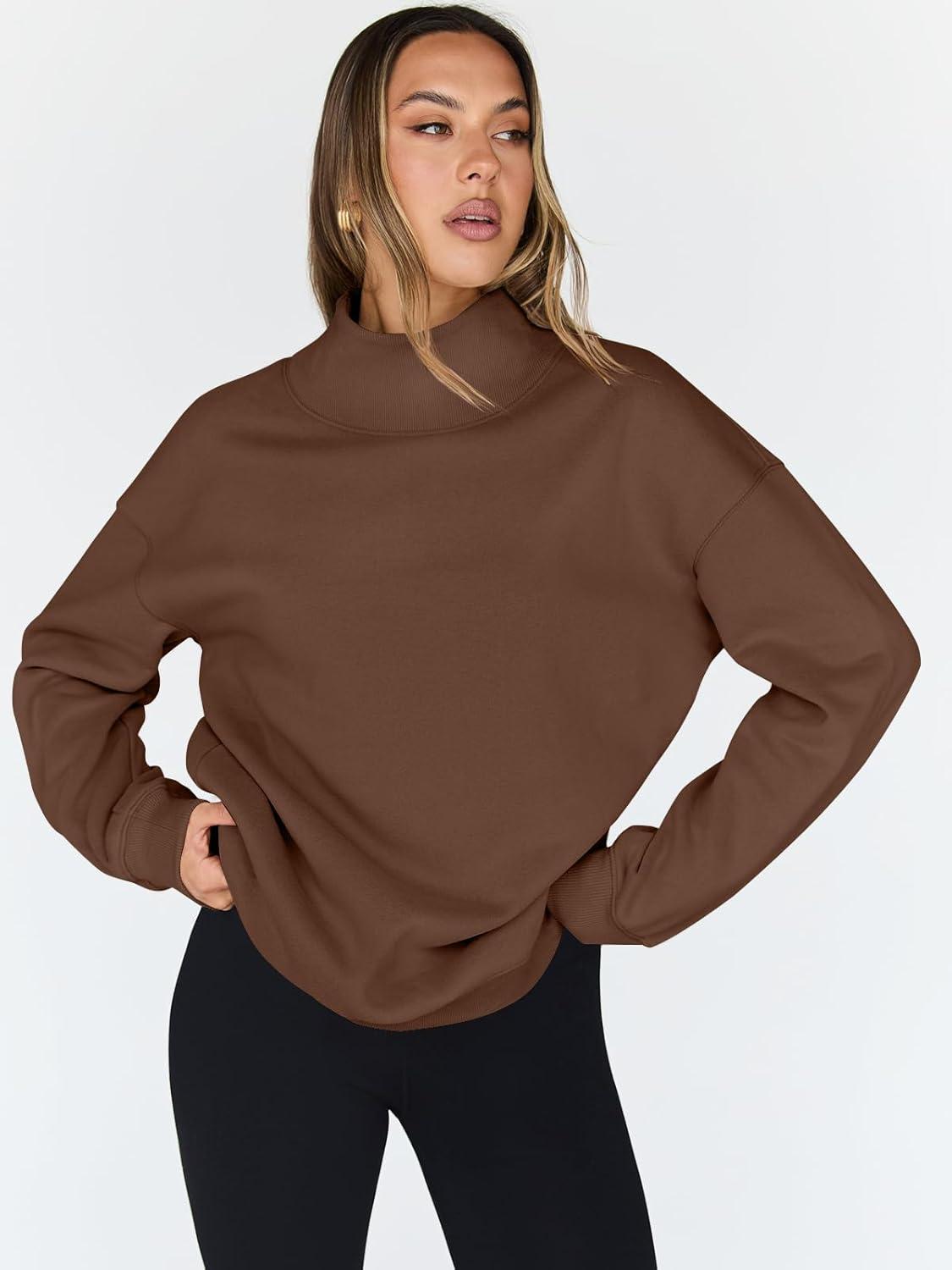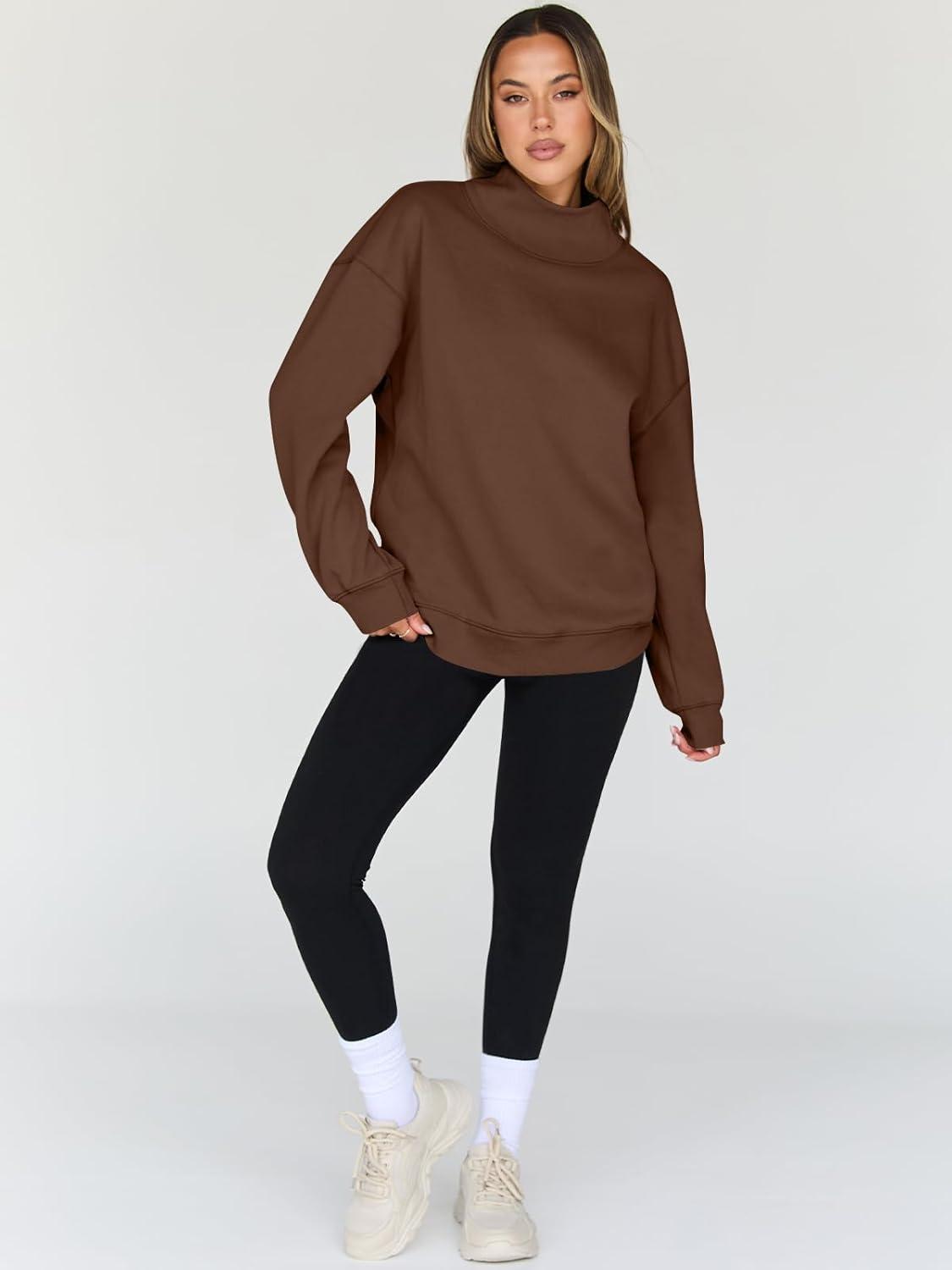 Trendy Queen Womens Oversized Sweatshirts Turtleneck Pullover Long Sleeve Hoodies Tops Fall Fashion Outfits 2025 Clothes(Brown)