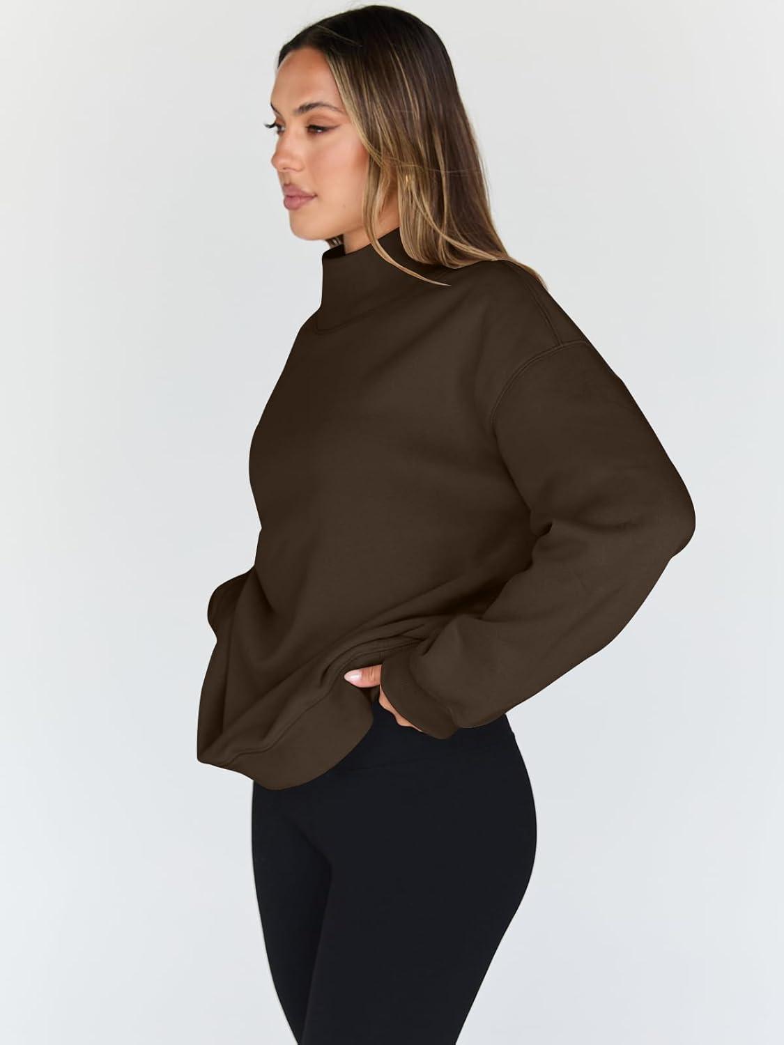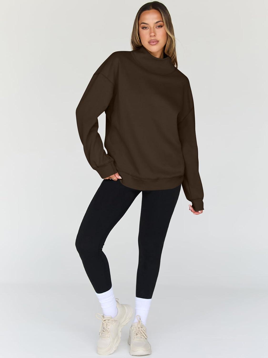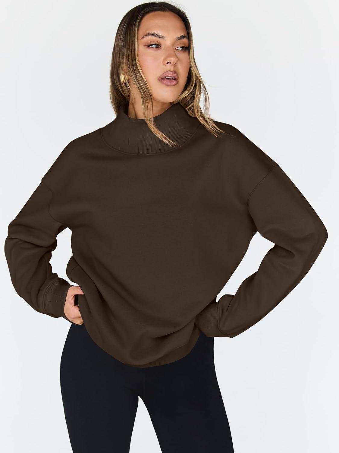 Trendy Queen Womens Oversized Sweatshirts Turtleneck Pullover Long Sleeve Hoodies Tops Fall Fashion Outfits 2025 Clothes(Coffee)