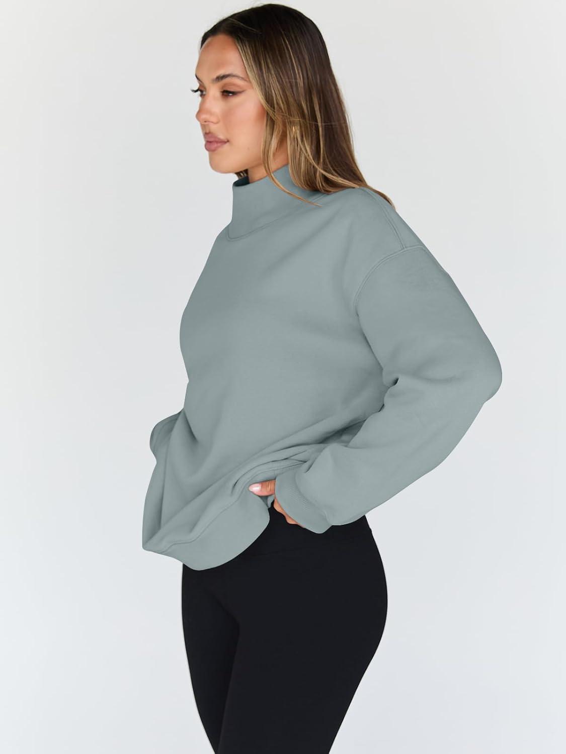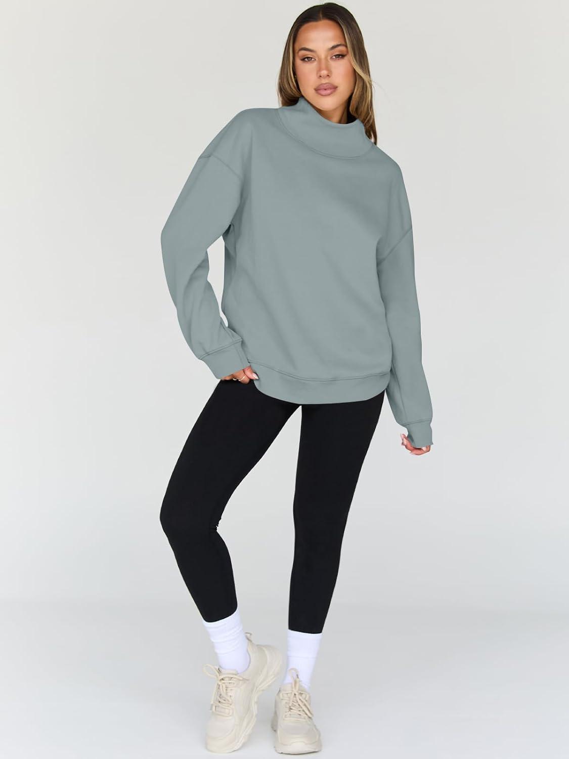 Trendy Queen Womens Oversized Sweatshirts Turtleneck Pullover Long Sleeve Hoodies Tops Fall Fashion Outfits 2025 Clothes(Greygreen)