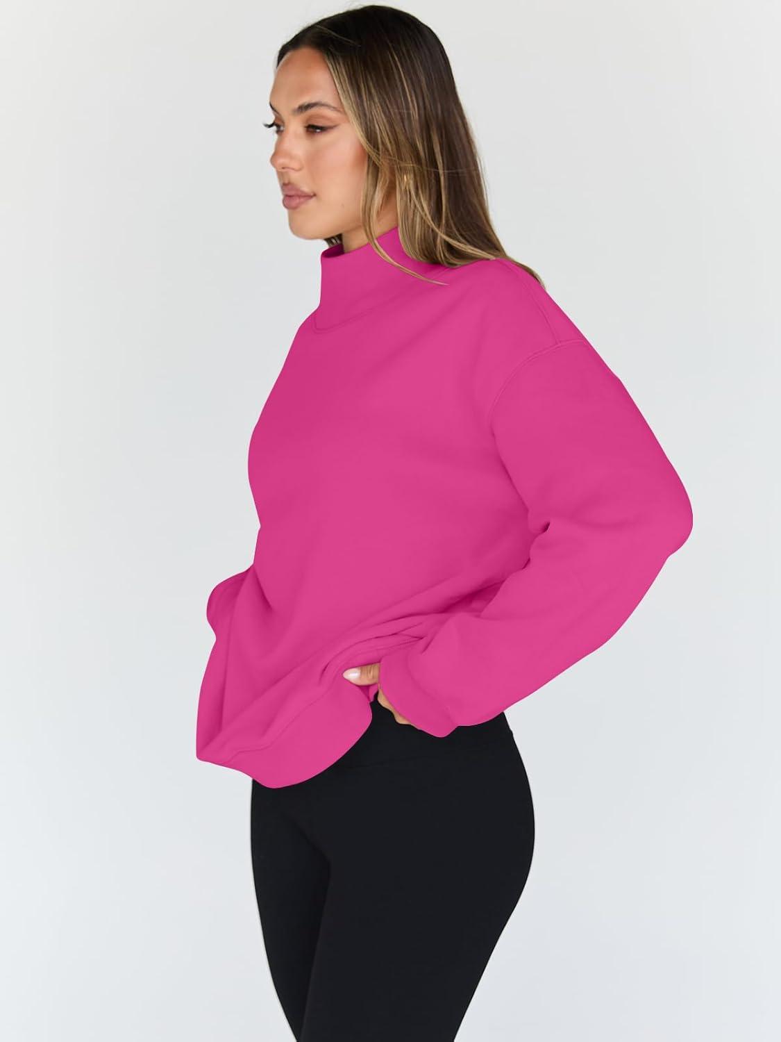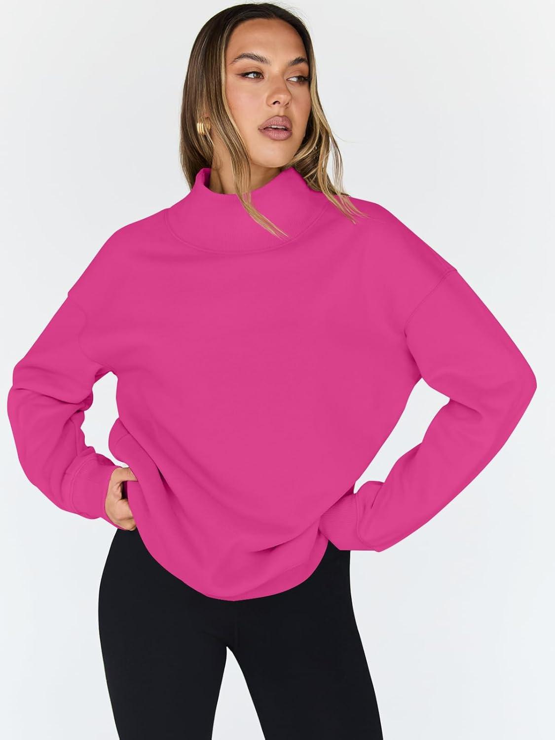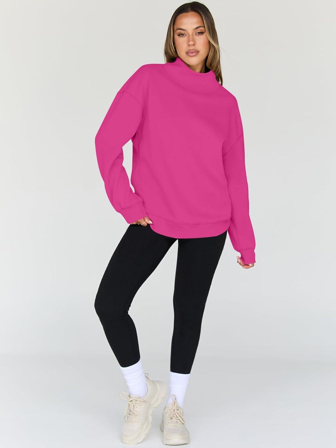 Trendy Queen Womens Oversized Sweatshirts Turtleneck Pullover Long Sleeve Hoodies Tops Fall Fashion Outfits 2025 Clothes(Hotpink)