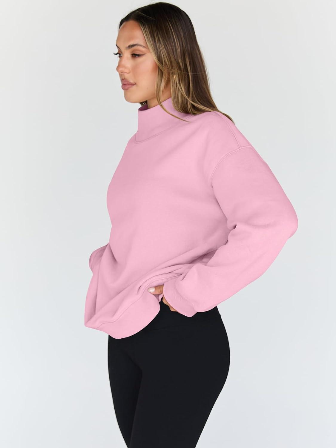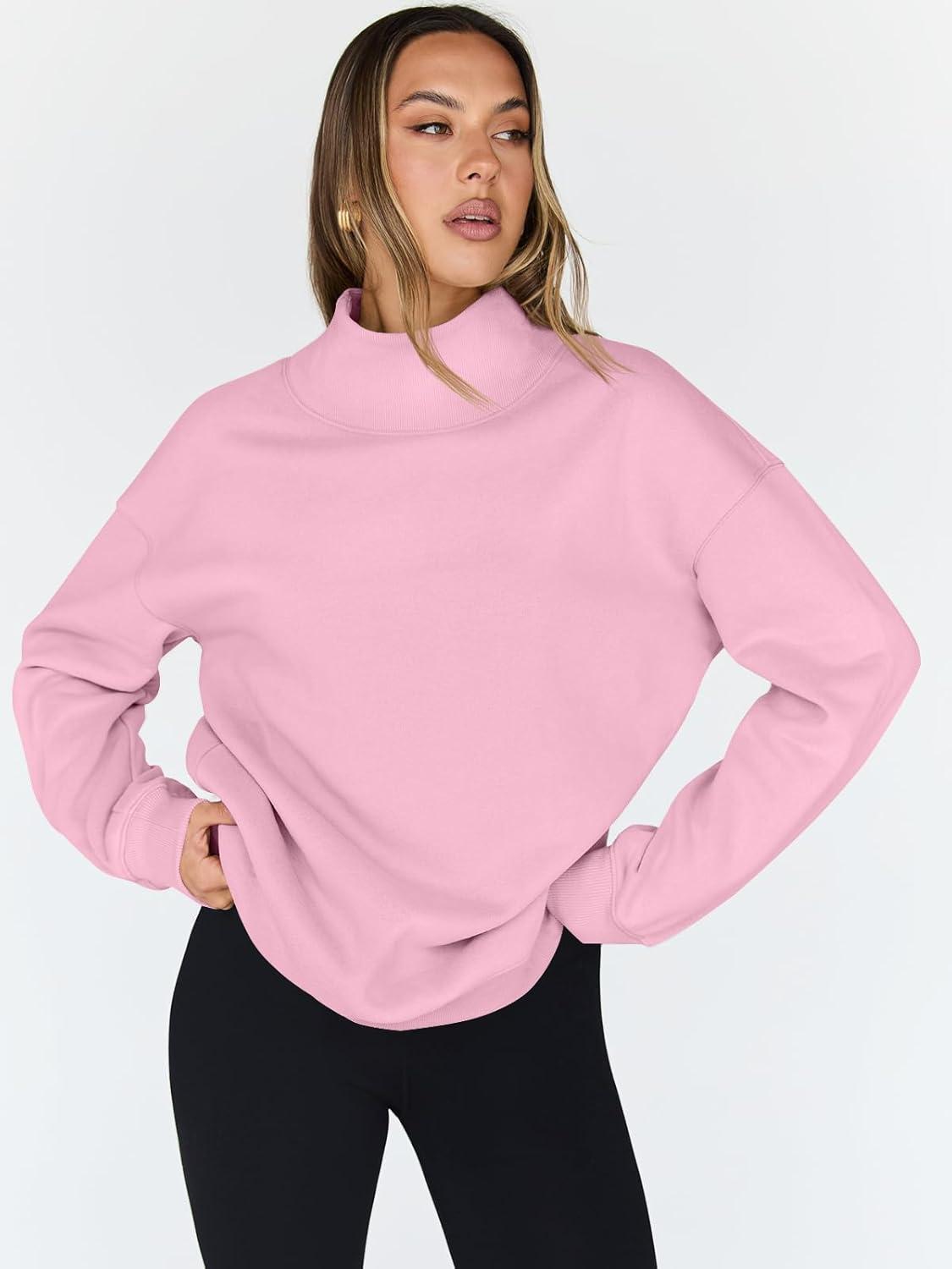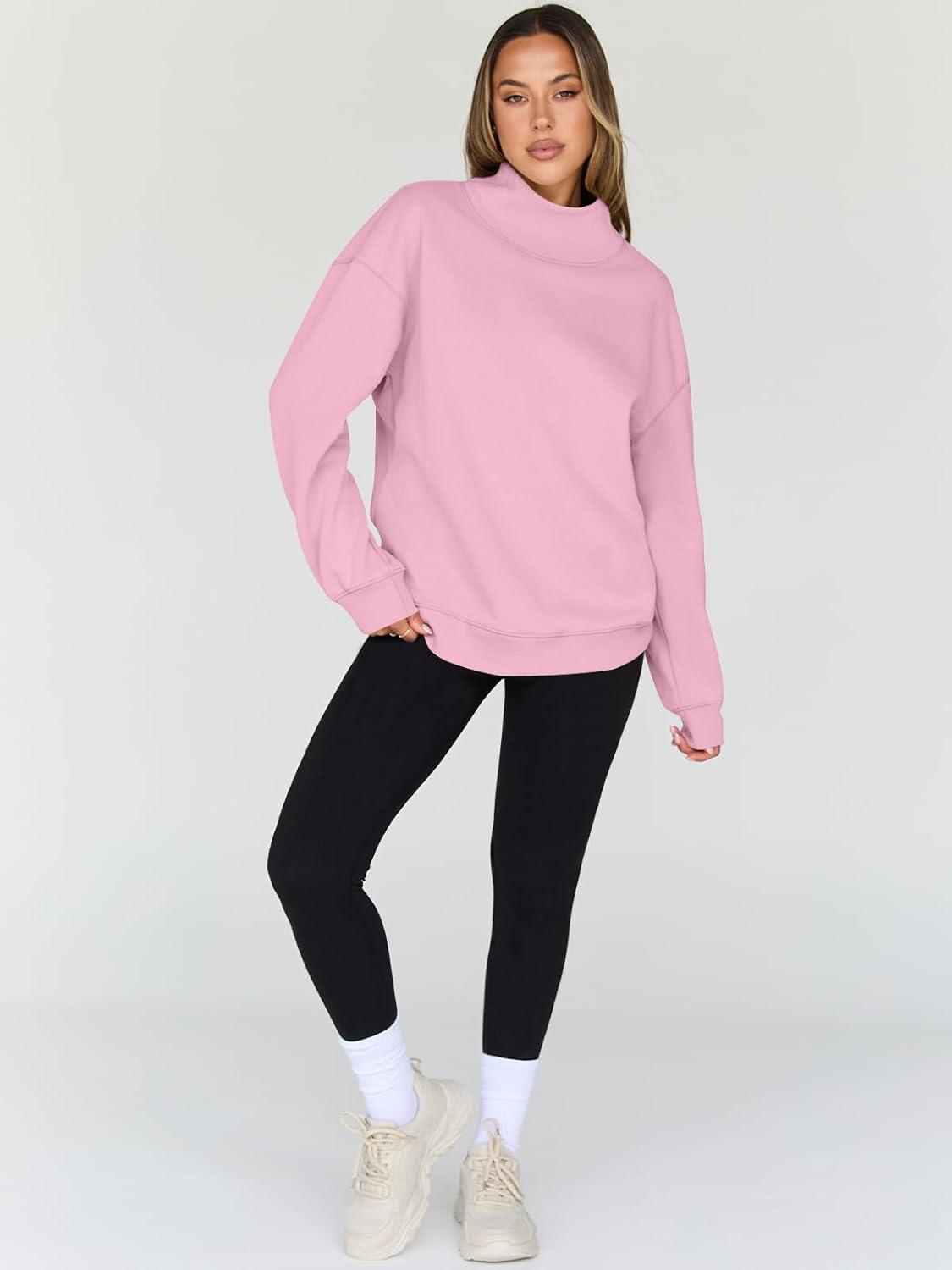 Trendy Queen Womens Oversized Sweatshirts Turtleneck Pullover Long Sleeve Hoodies Tops Fall Fashion Outfits 2025 Clothes(Lightpink)