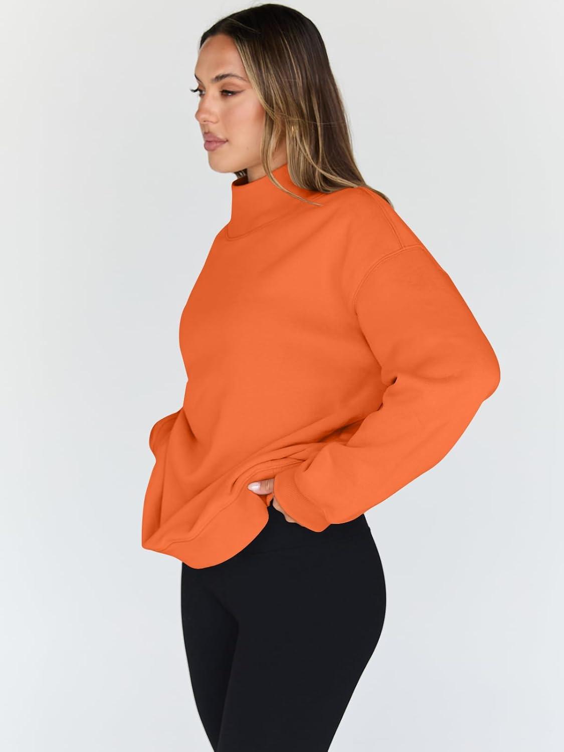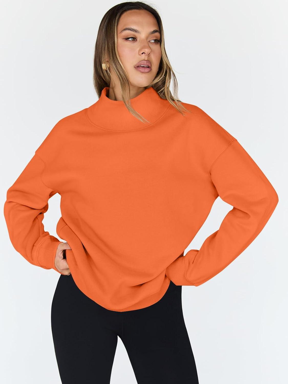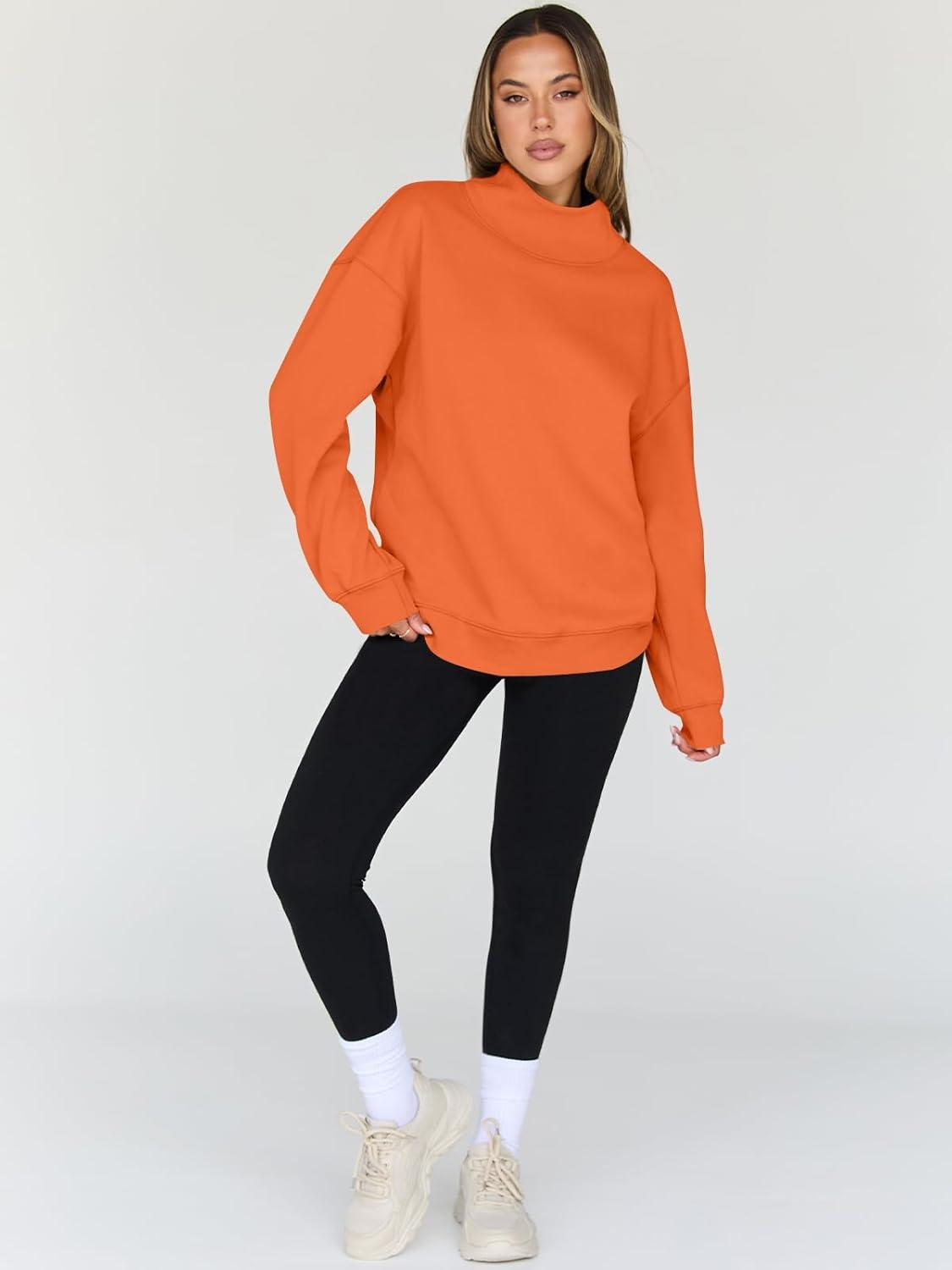 Trendy Queen Womens Oversized Sweatshirts Turtleneck Pullover Long Sleeve Hoodies Tops Fall Fashion Outfits 2025 Clothes(Orange)