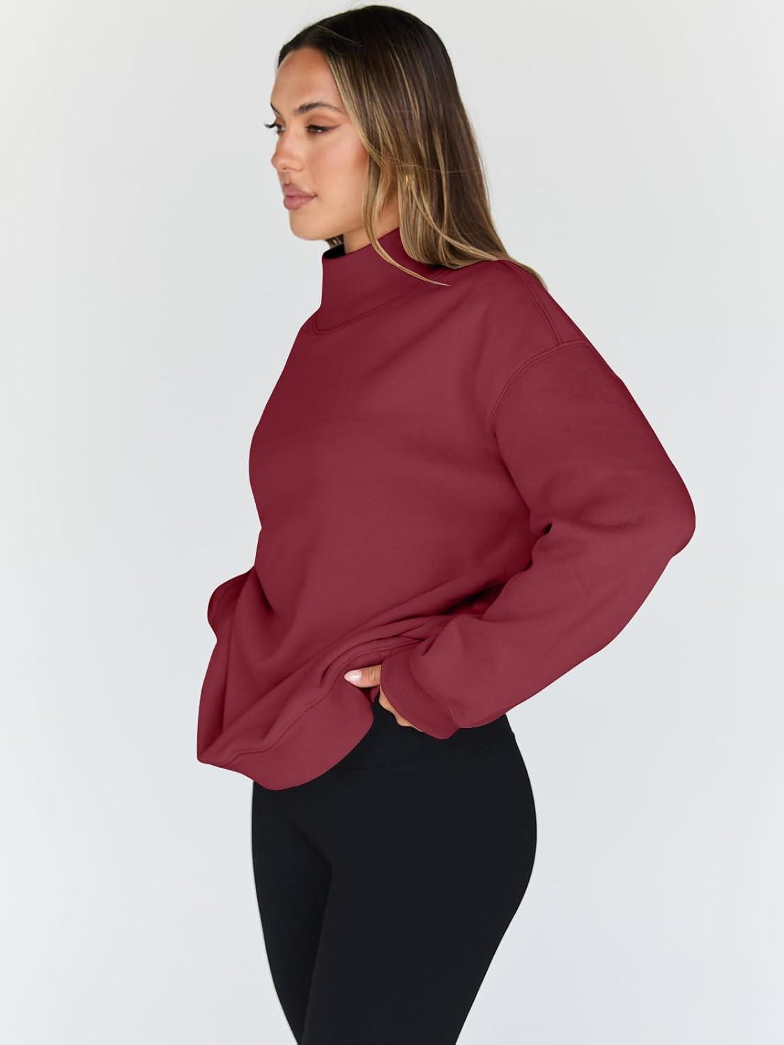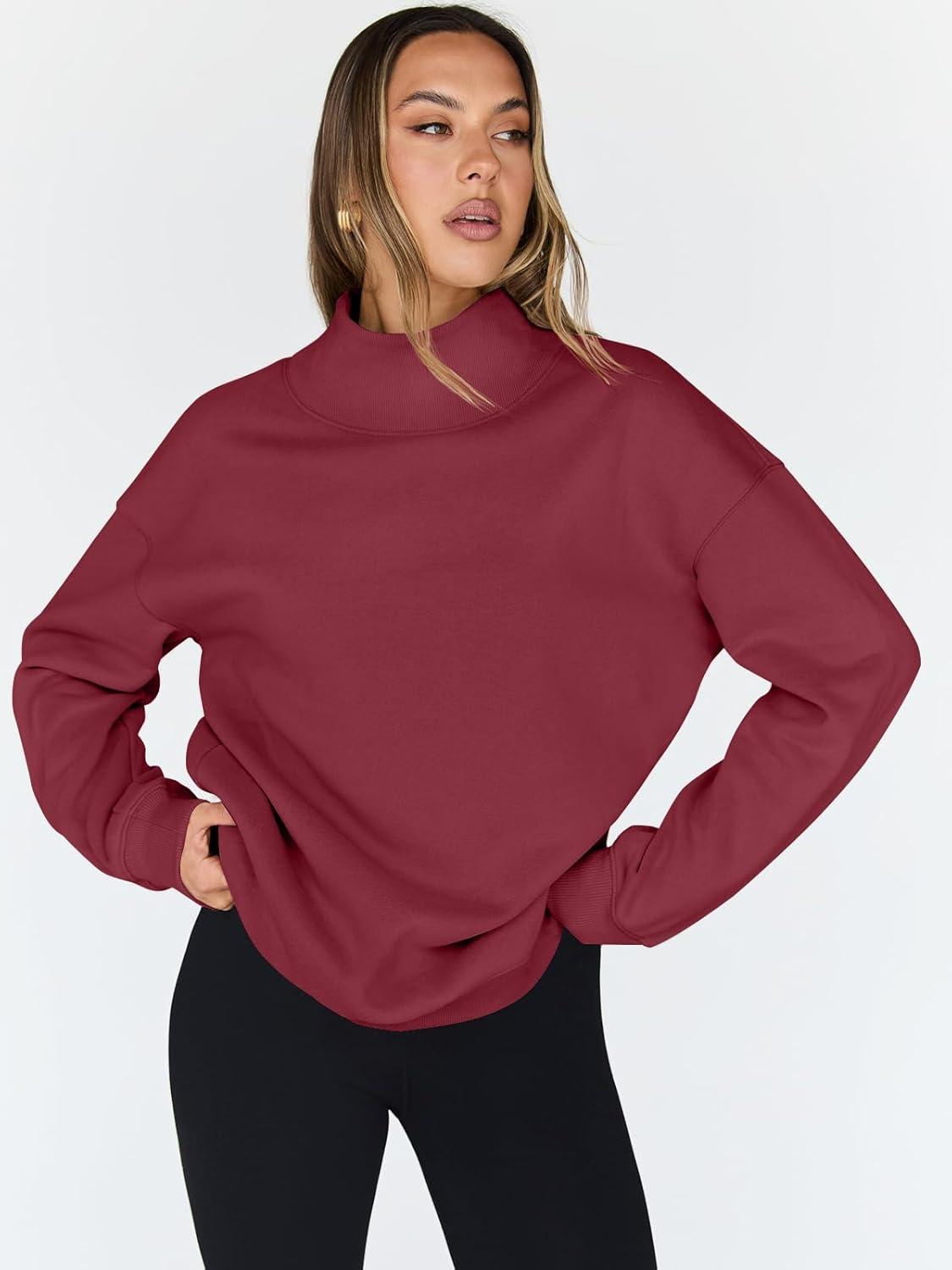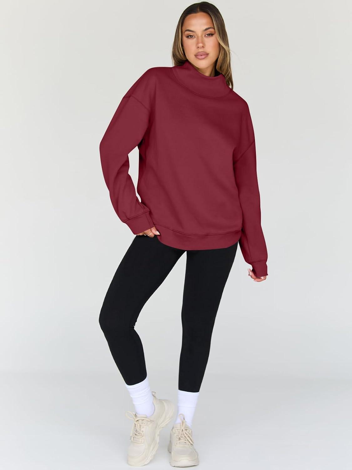 Trendy Queen Womens Oversized Sweatshirts Turtleneck Pullover Long Sleeve Hoodies Tops Fall Fashion Outfits 2025 Clothes(Wine)