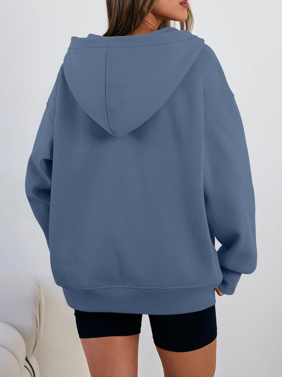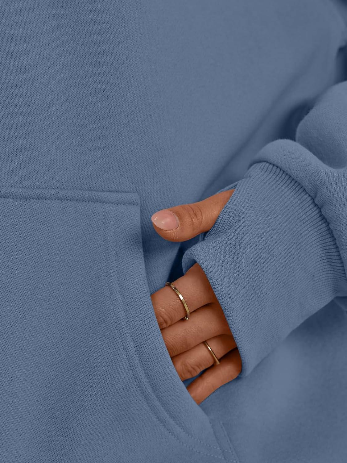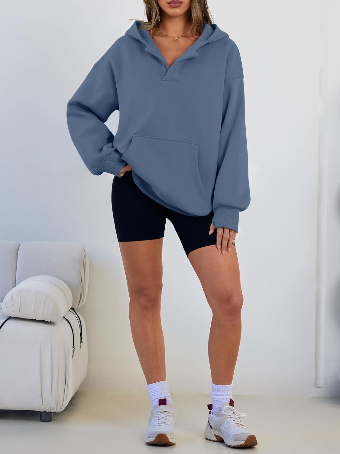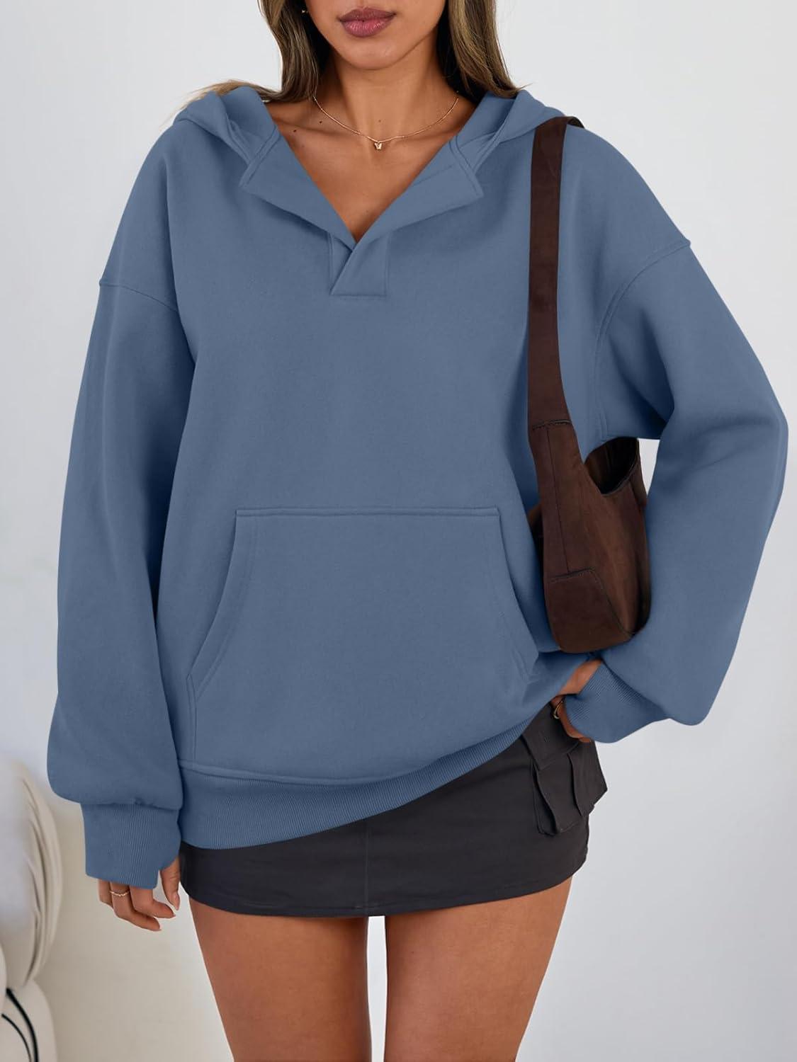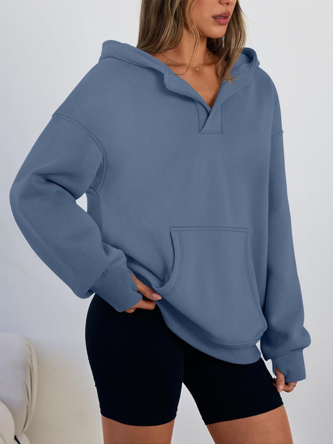 Trendy Queen Womens Oversized V Neck Hoodies with Thumb Hole Pullover Sweatshirts Y2k Clothes Fall Fashion Outfits 2025(Dustyblue)