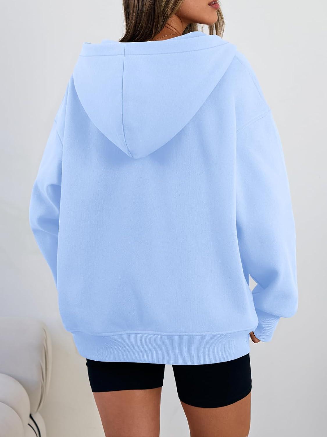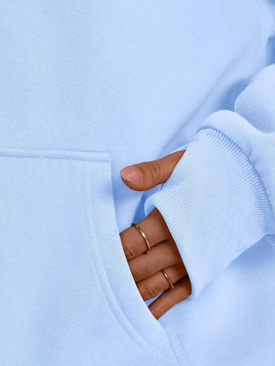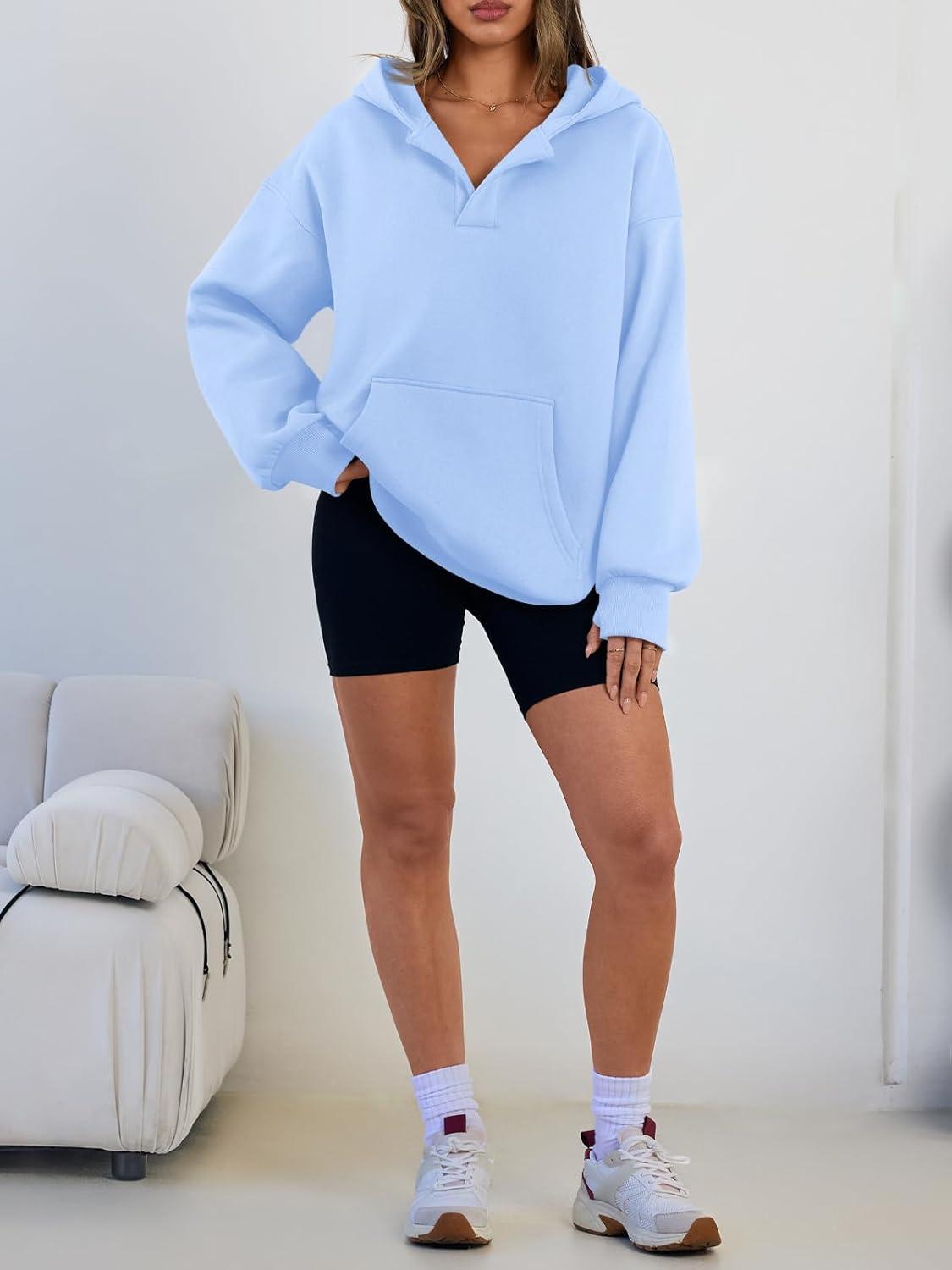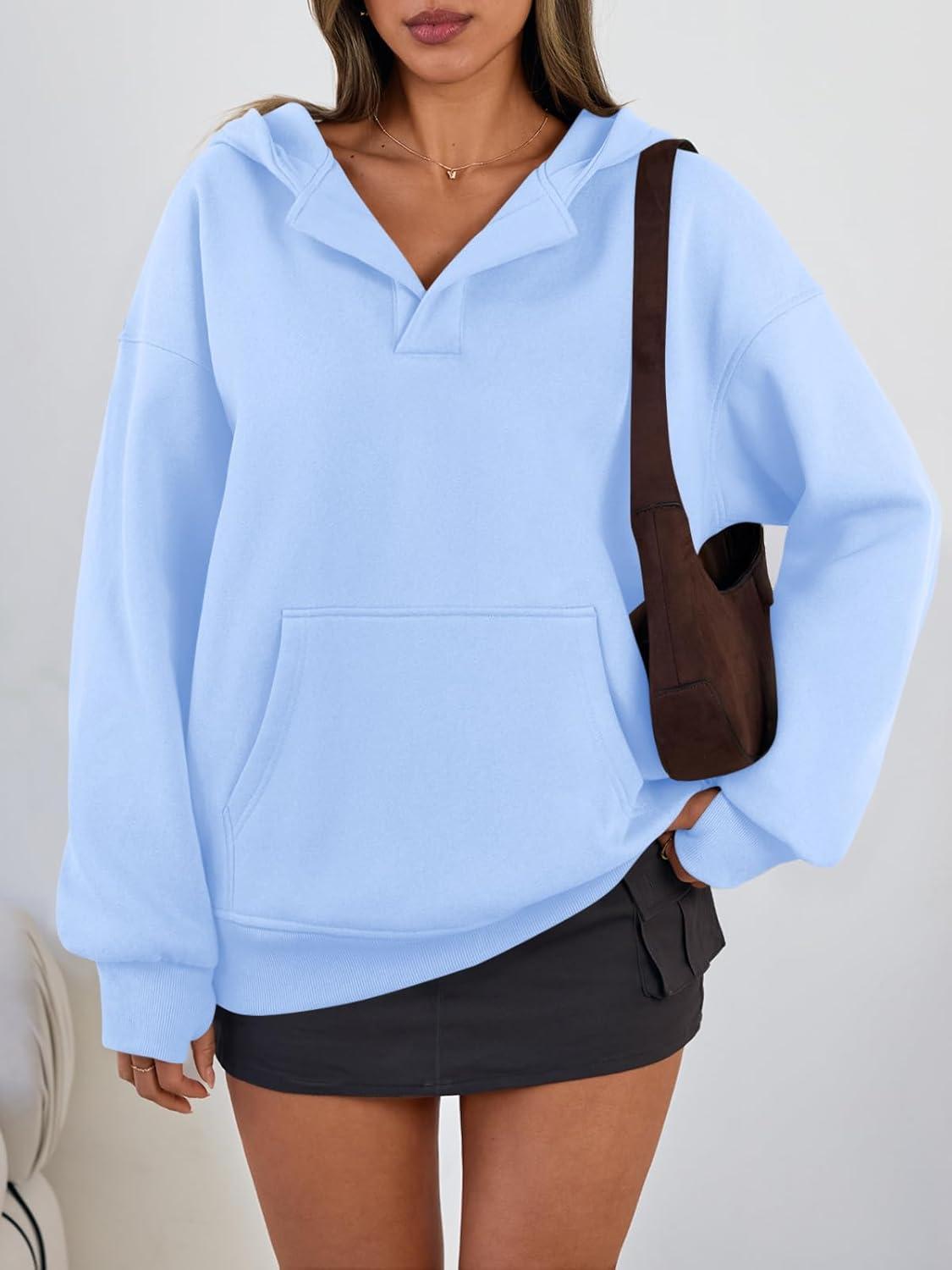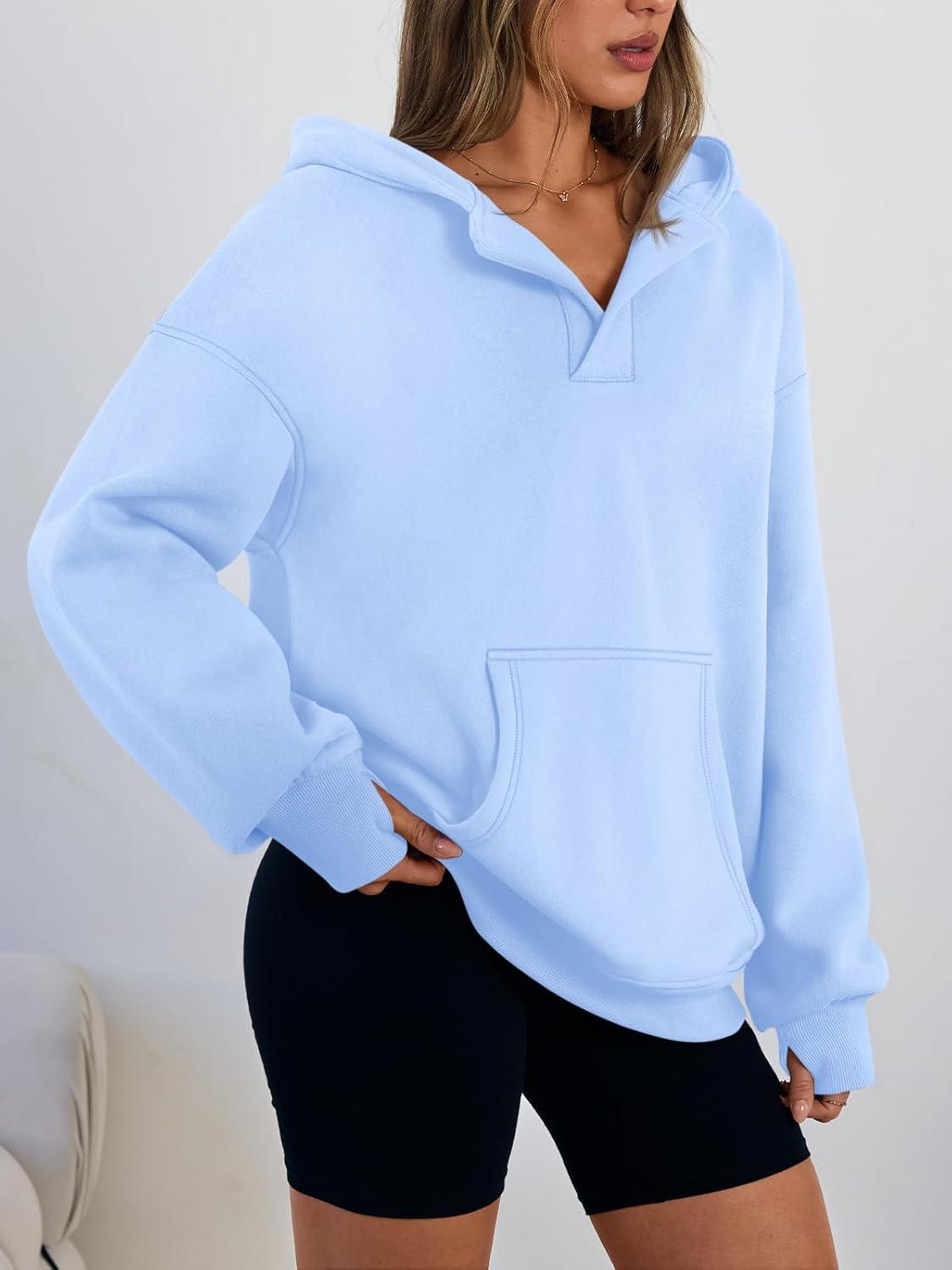 Trendy Queen Womens Oversized V Neck Hoodies with Thumb Hole Pullover Sweatshirts Y2k Clothes Fall Fashion Outfits 2025(Skyblue)