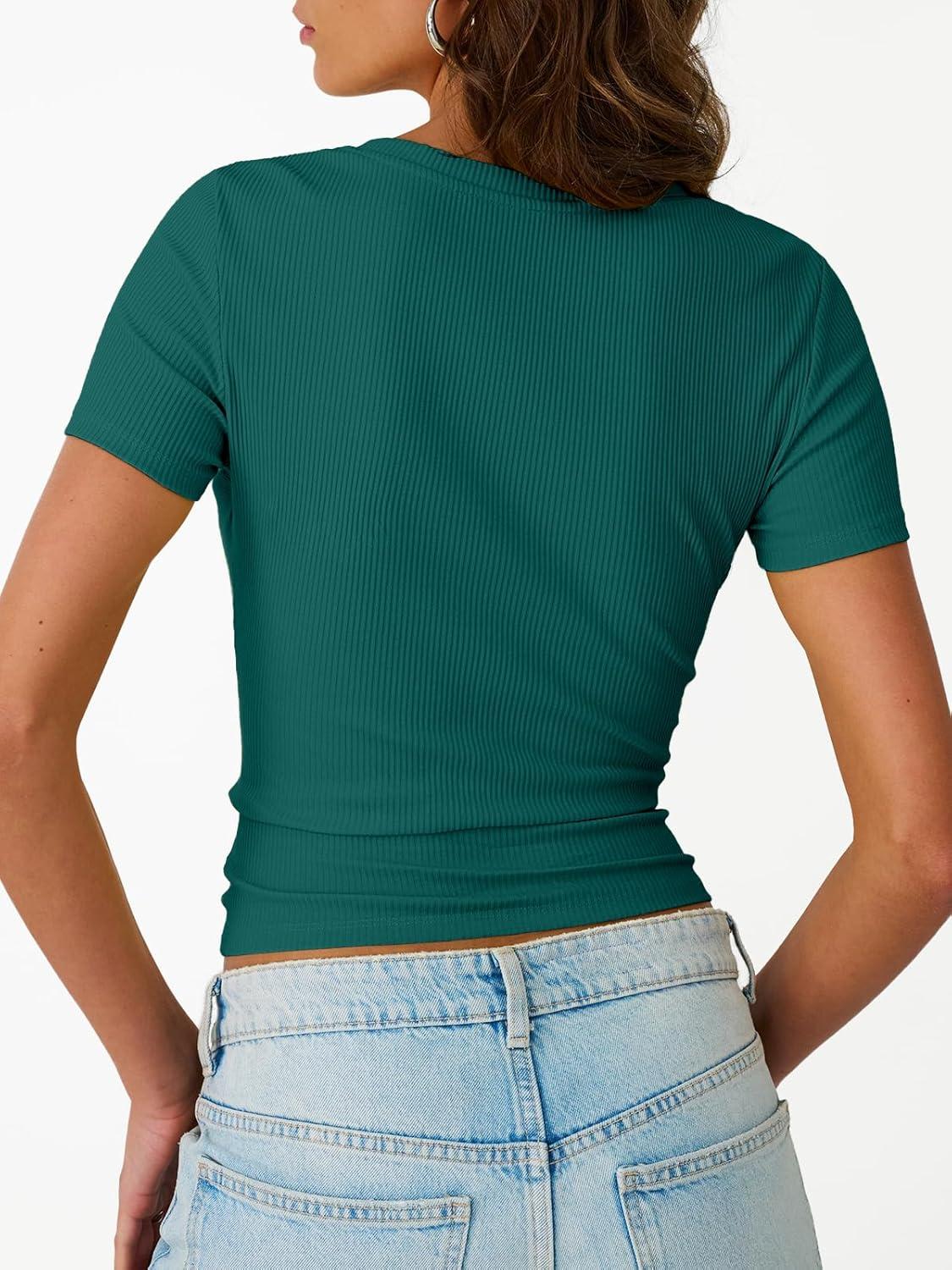 Be the first to review “Trendy Queen Womens Short Sleeve Shirts Crewneck Ribbed Knit Slim Fitted T-Shirt Summer Basic Tee 2025 Tops(Forest Green)”