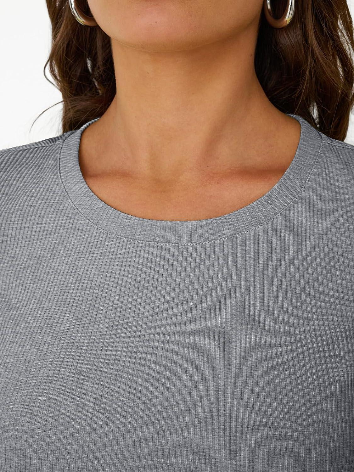 Trendy Queen Womens Short Sleeve Shirts Crewneck Ribbed Knit Slim Fitted T-Shirt Summer Basic Tee 2025 Tops(Grey)