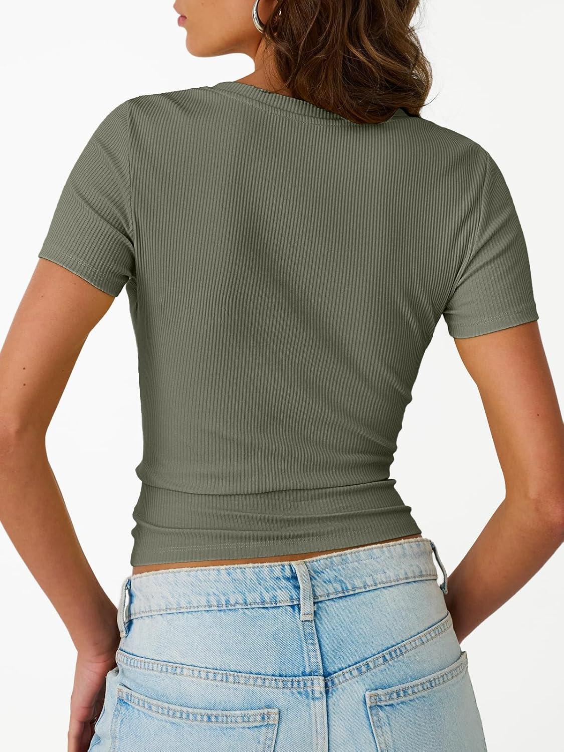 Be the first to review “Trendy Queen Womens Short Sleeve Shirts Crewneck Ribbed Knit Slim Fitted T-Shirt Summer Basic Tee 2025 Tops(Sage Green)”