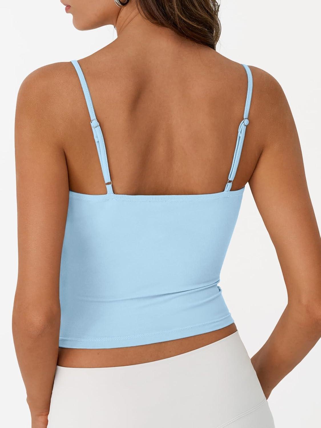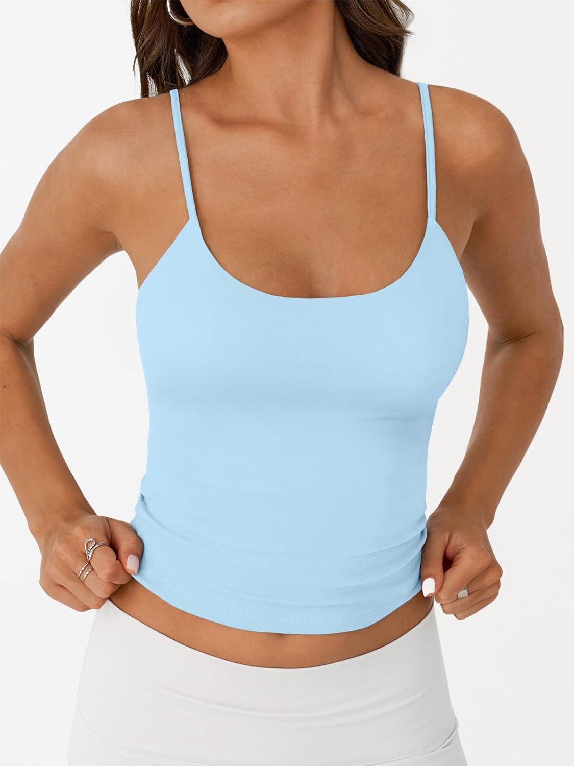 Trendy Queen Womens Spaghetti Strap Tank Top Summer Double Lined Workout Camisole Going Out Cute Tops Y2k Teen Girl Basic(Lightblue)