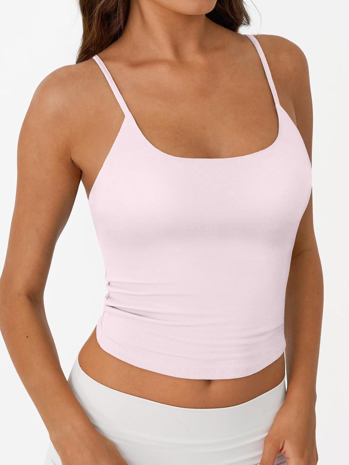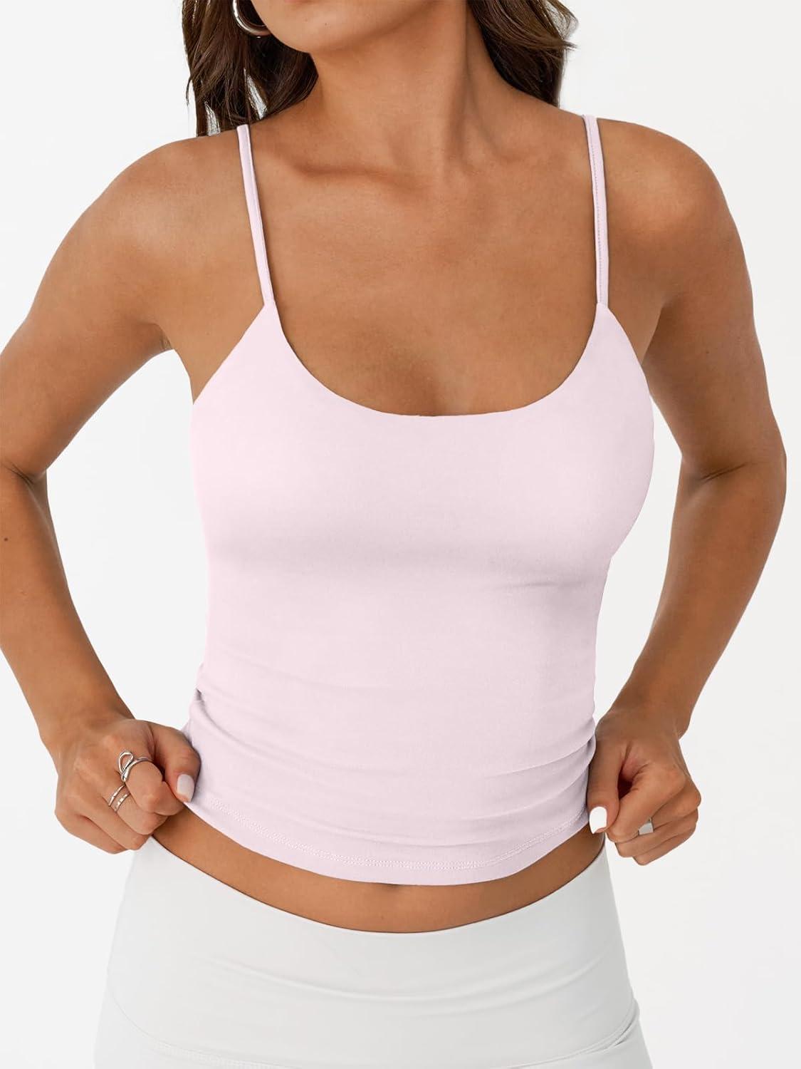 Trendy Queen Womens Spaghetti Strap Tank Top Summer Double Lined Workout Camisole Going Out Cute Tops Y2k Teen Girl Basic(Lightpink)