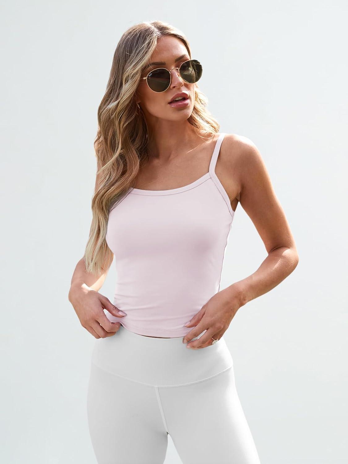 Trendy Queen Womens Spaghetti Strap Tank Tops Adjustable Cute Camisole Going Out Crop Tops Summer Clothes(Pink)
