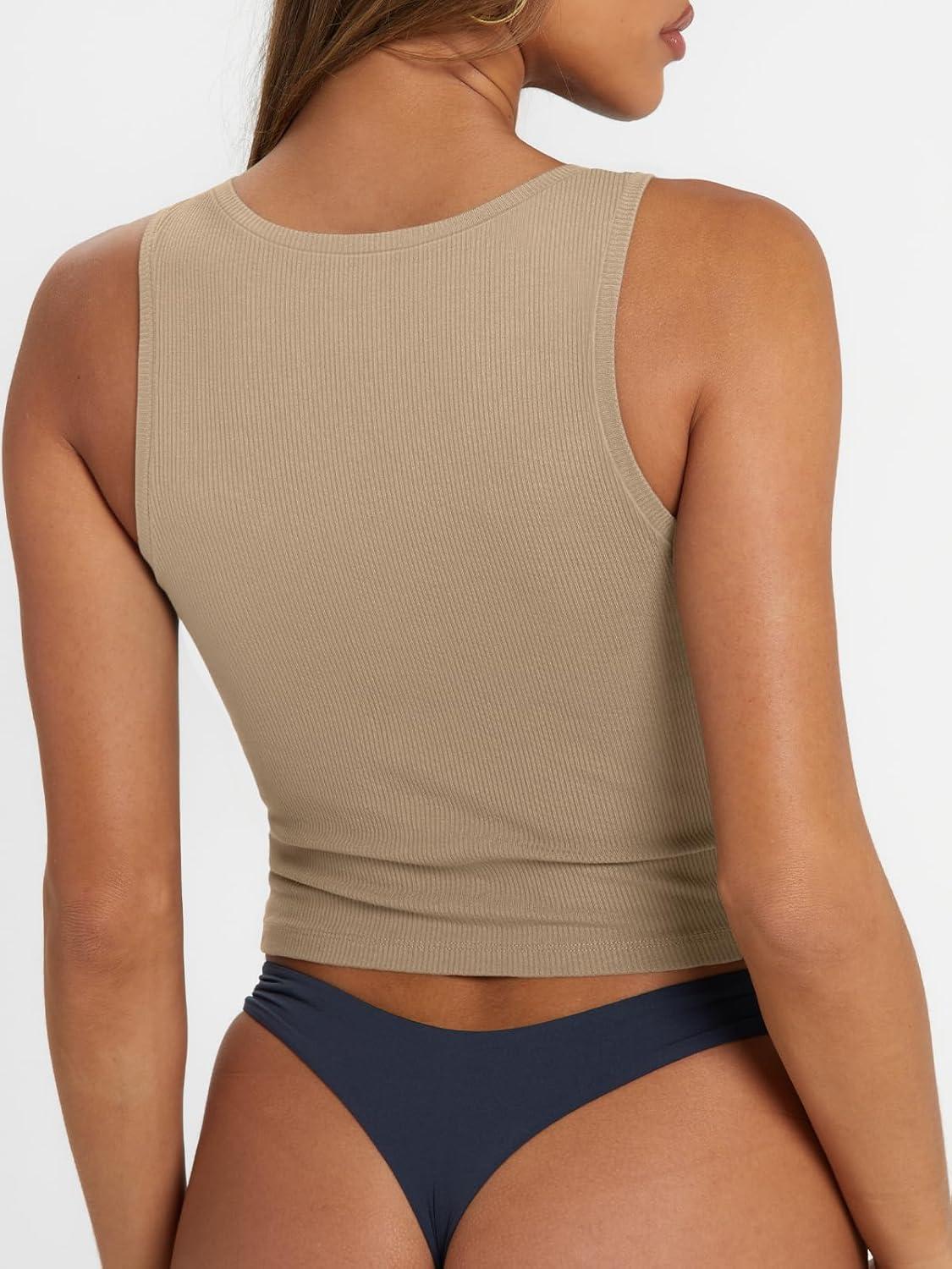 Trendy Queen Women’s Summer Square Neck Tank Tops Workout Cropped Ribbed Summer Camisole Sleeveless Clothes 2025(Coffeegrey)