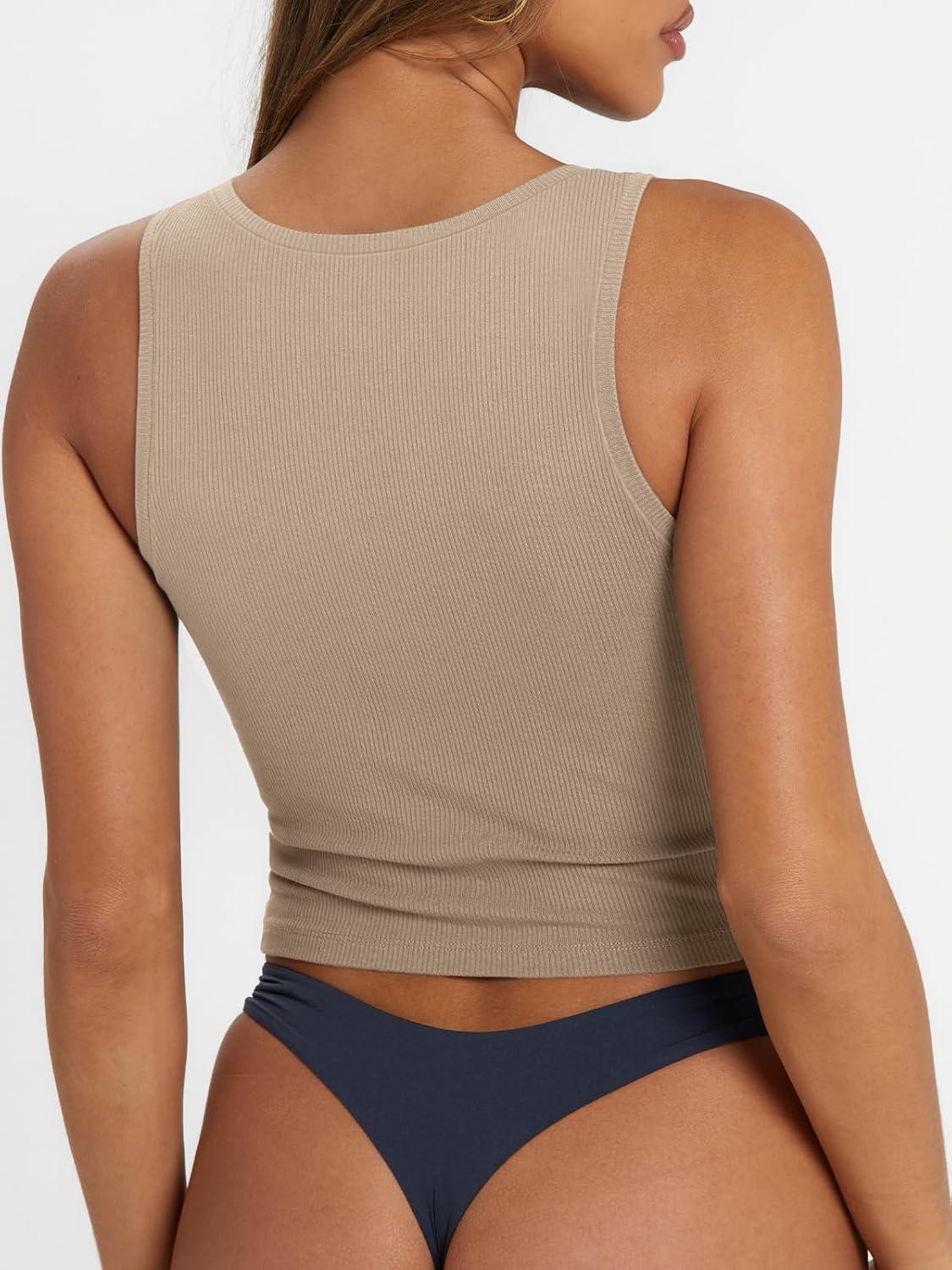 Trendy Queen Women’s Summer Square Neck Tank Tops Workout Cropped Ribbed Summer Camisole Sleeveless Clothes 2025(Nude)
