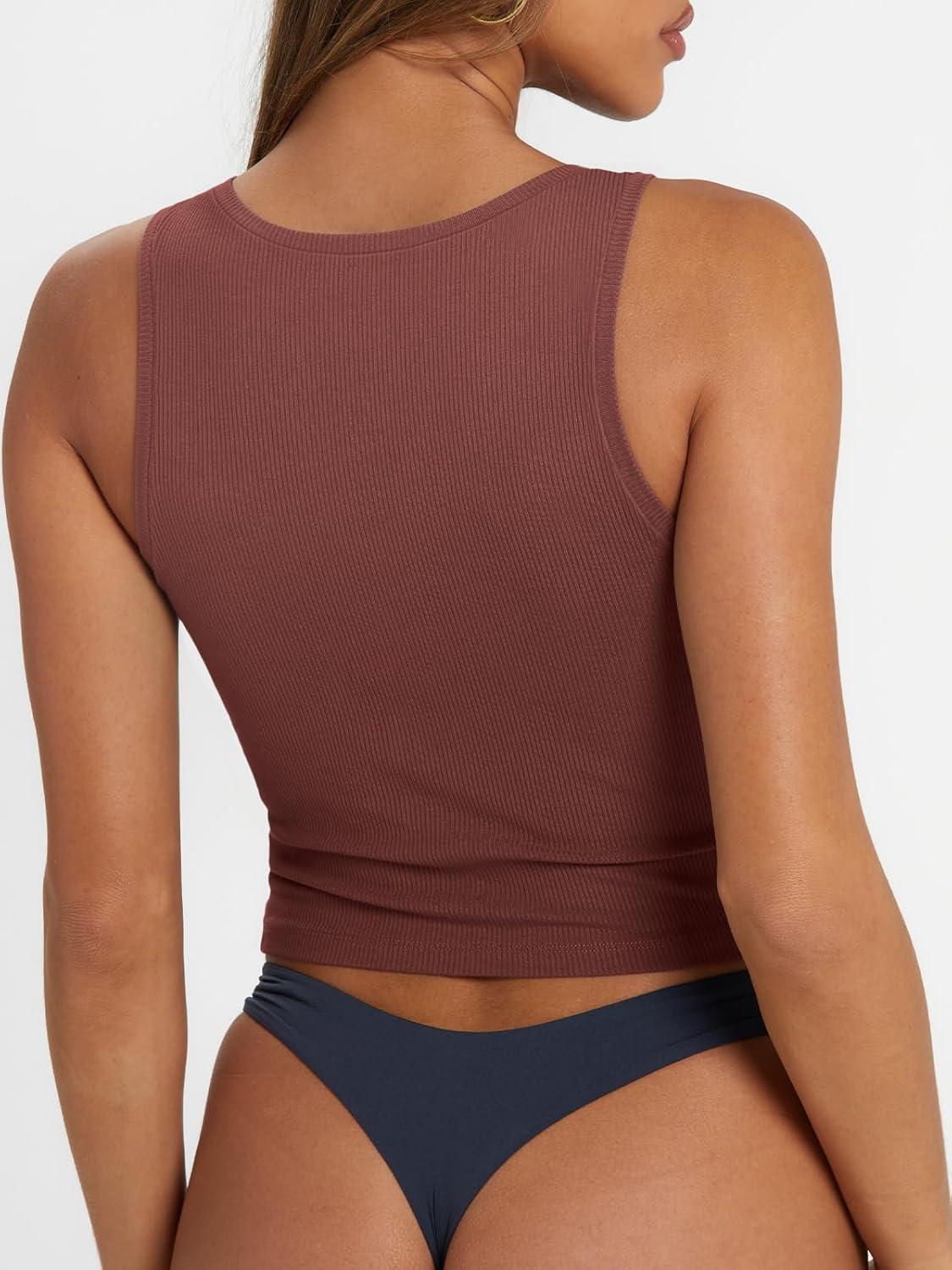 Trendy Queen Women’s Summer Square Neck Tank Tops Workout Cropped Ribbed Summer Camisole Sleeveless Clothes 2025(Rust)