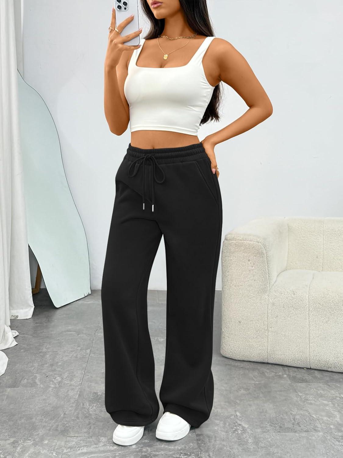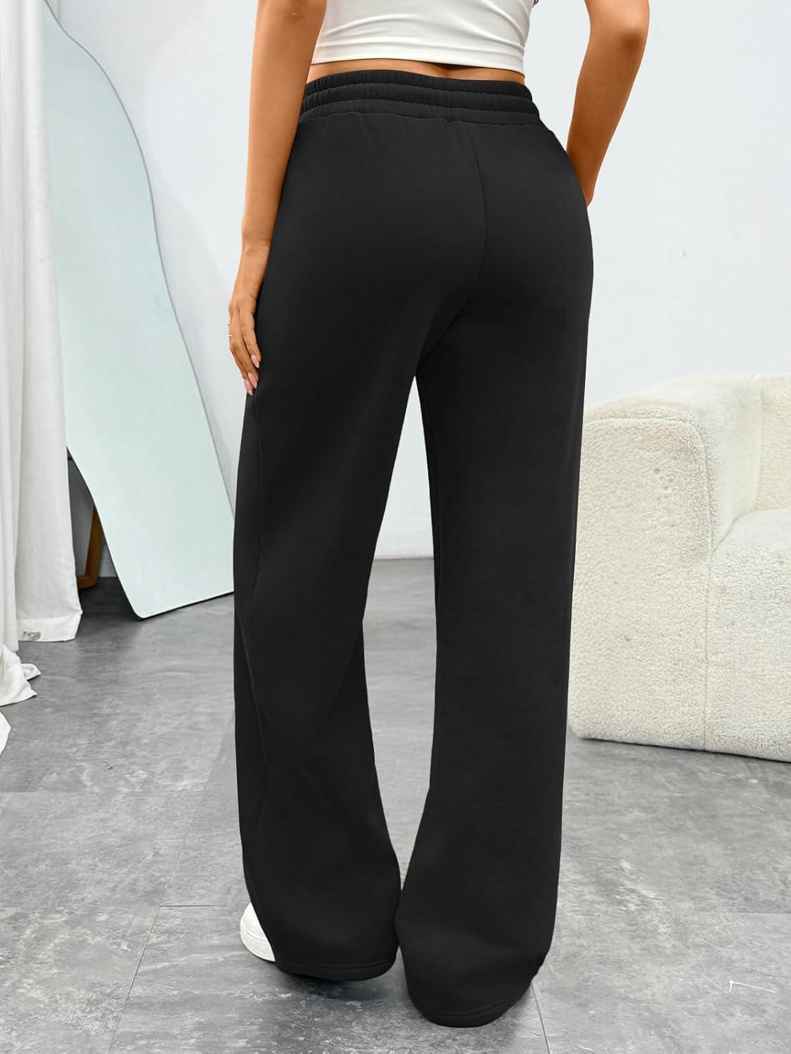 Trendy Queen Womens Sweatpants Baggy Wide Leg Barrel Pants Lounge Comfy Palazzo Joggers with Pockets(Black)
