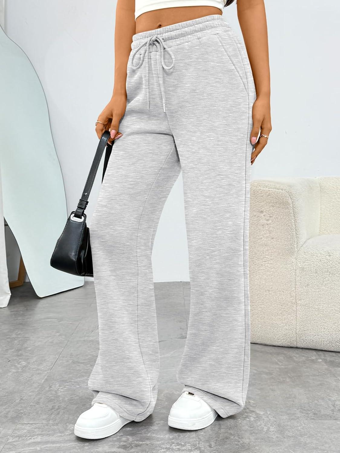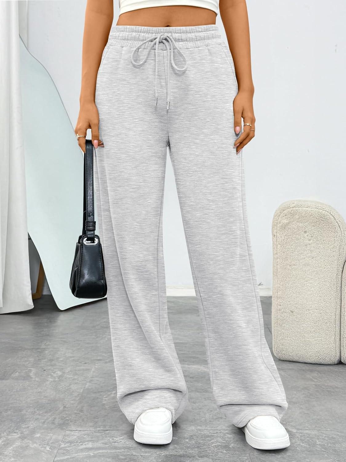Trendy Queen Womens Sweatpants Baggy Wide Leg Barrel Pants Lounge Comfy Palazzo Joggers with Pockets(Grey)