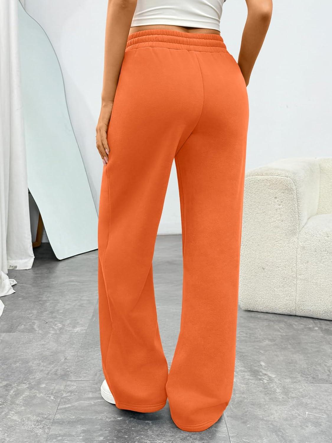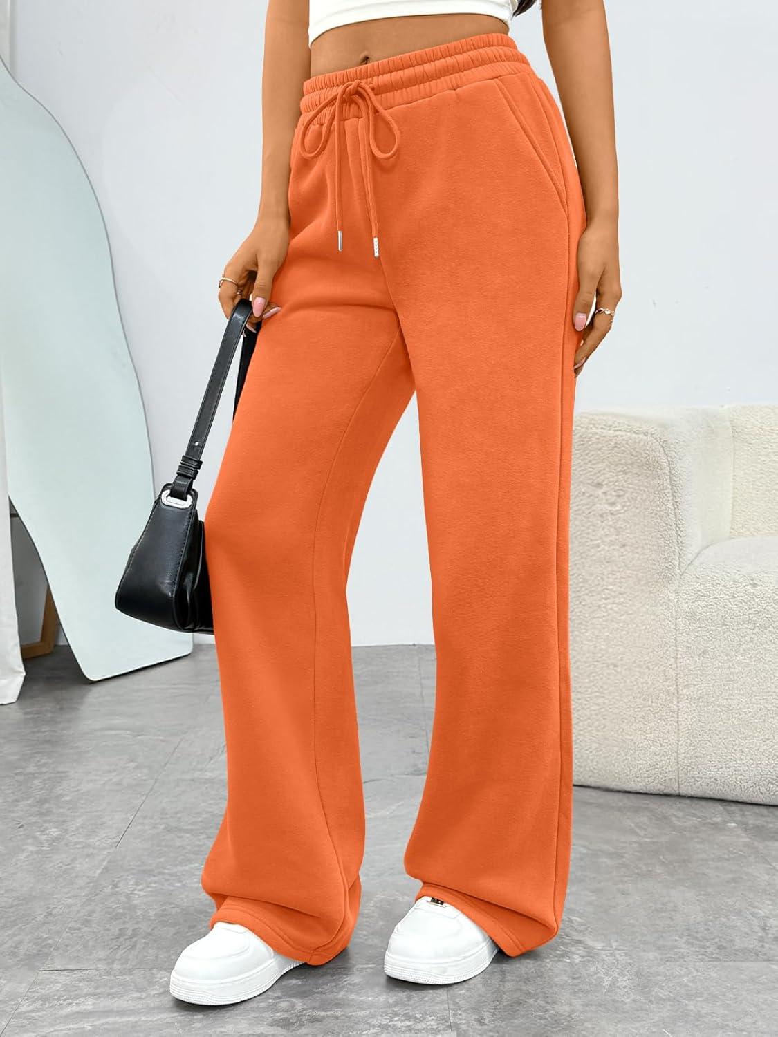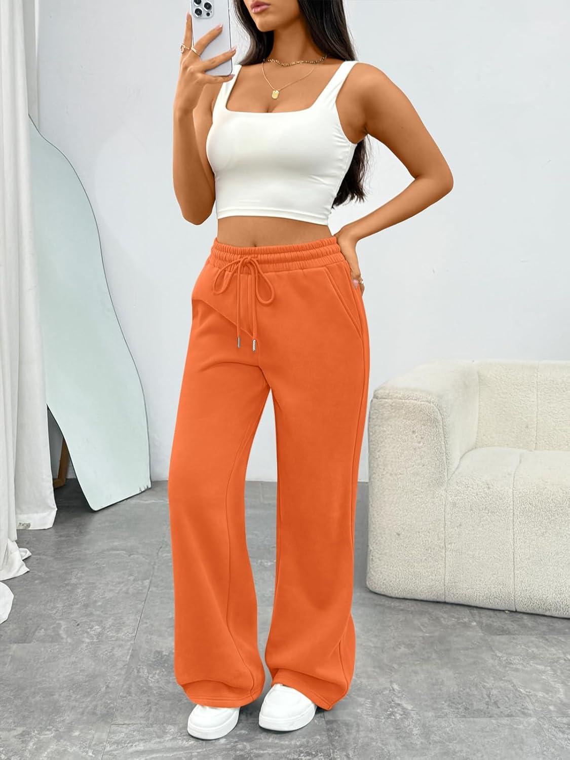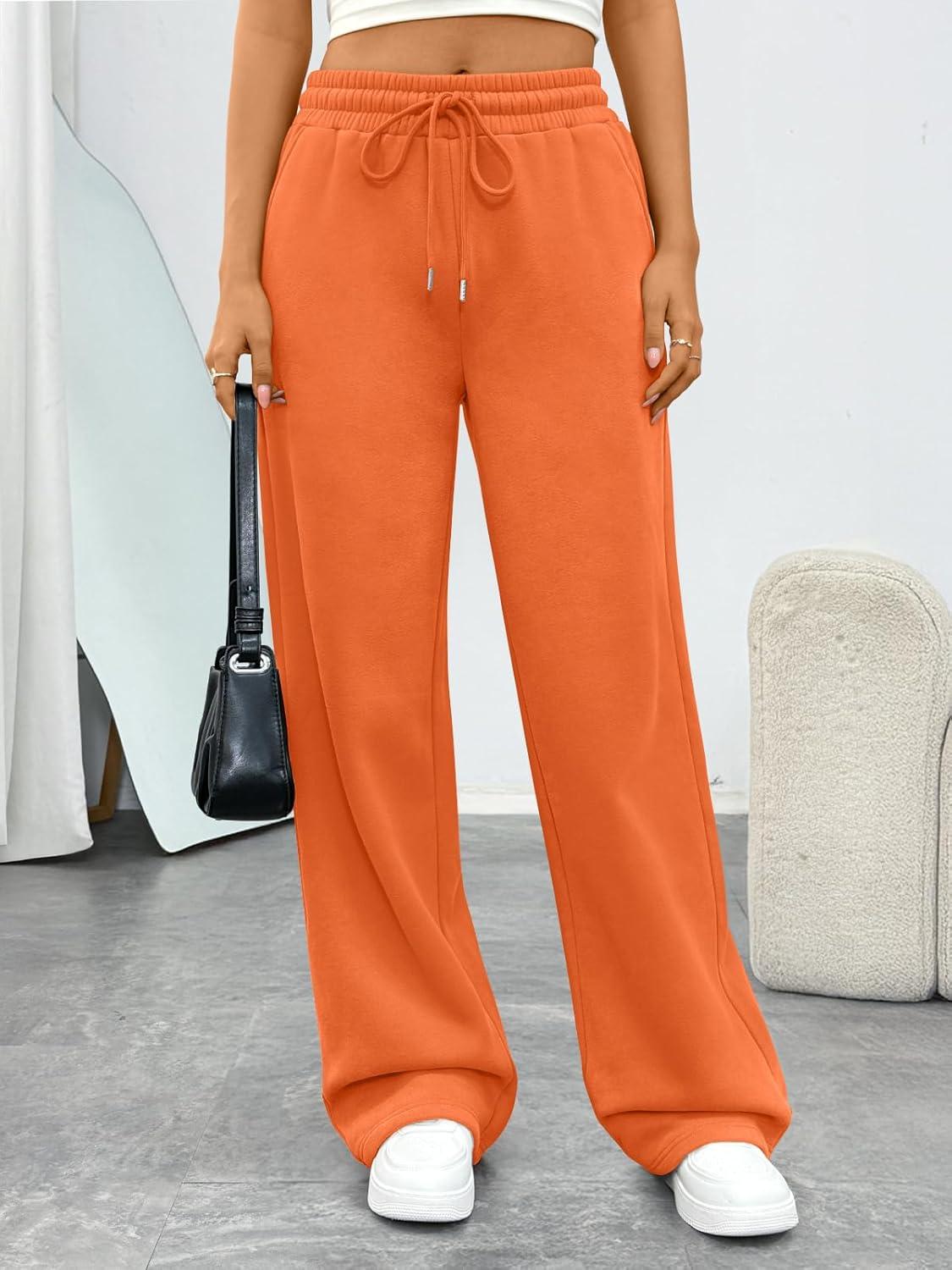 Trendy Queen Womens Sweatpants Baggy Wide Leg Barrel Pants Lounge Comfy Palazzo Joggers with Pockets(Orange)