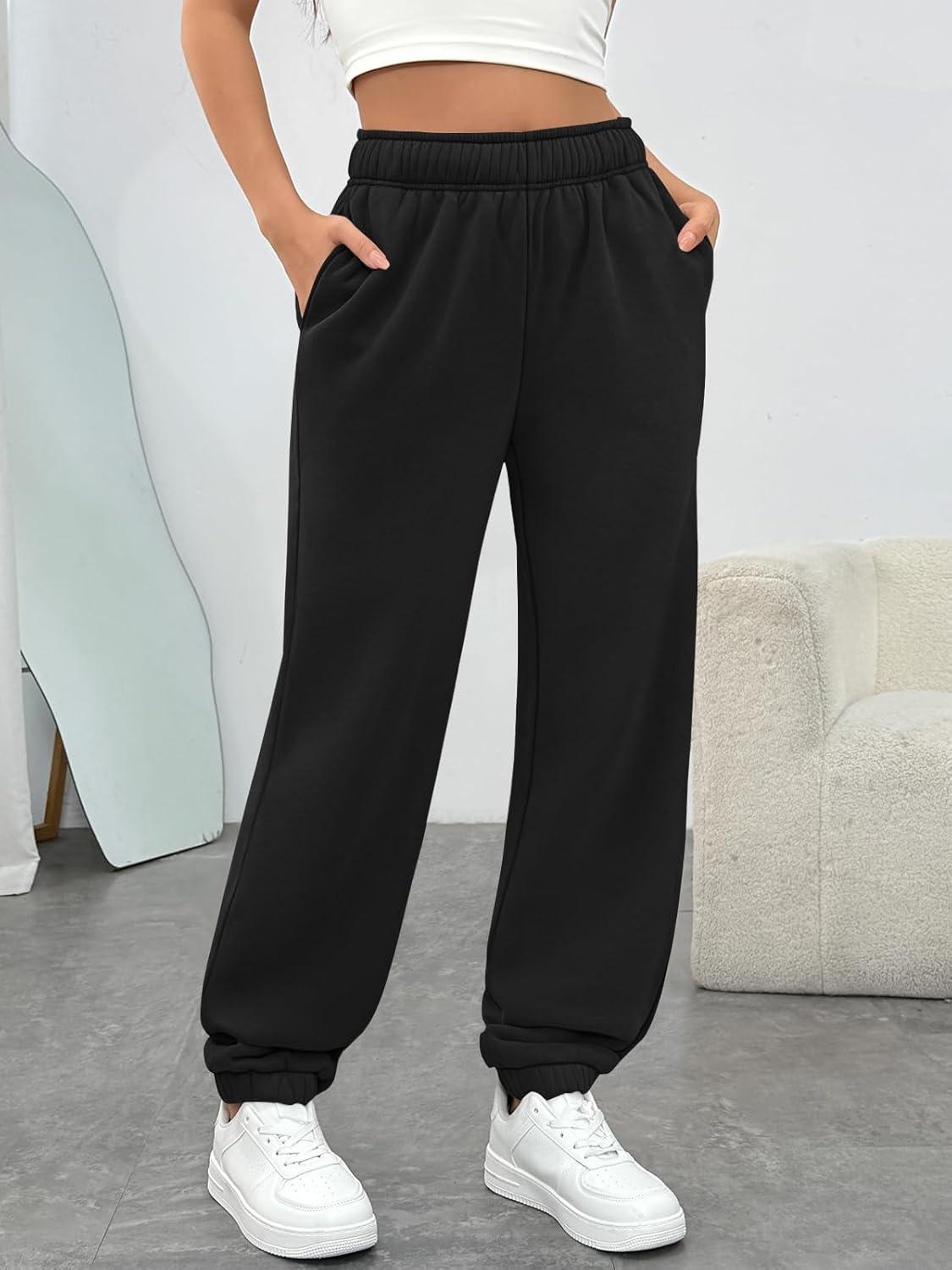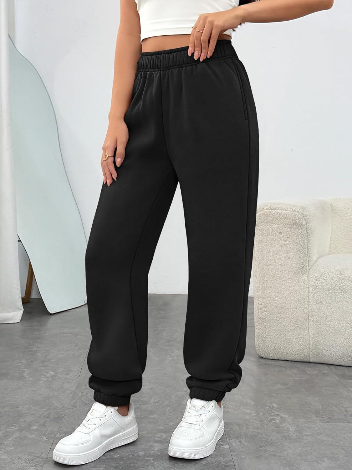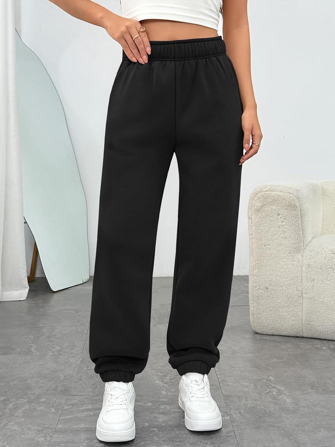Trendy Queen Womens Sweatpants High Waisted Winter Baggy Lounge Pants Fall Active Fleece Comfy Joggers 2025(Black)