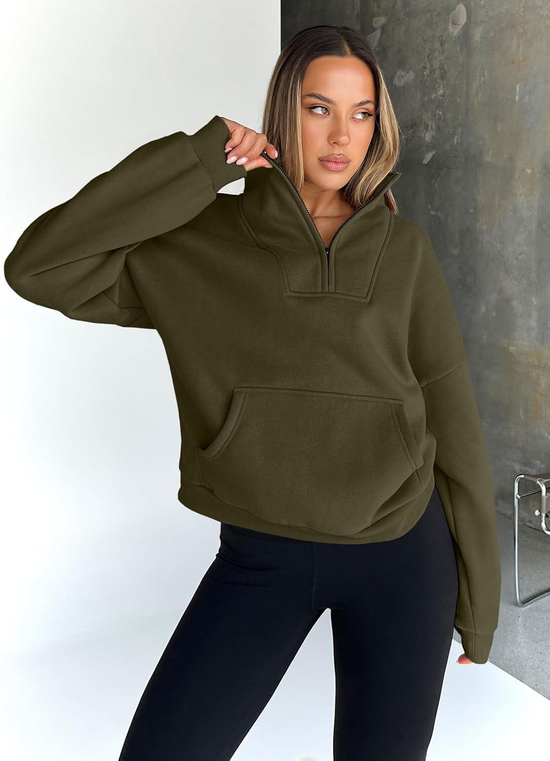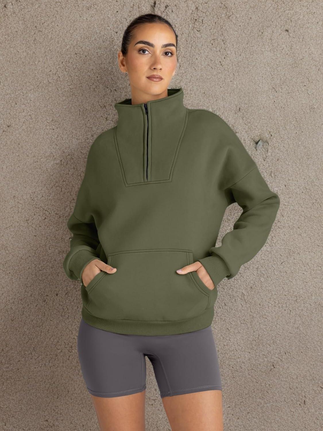 Trendy Queen Womens Sweatshirts Quarter Half Zip Pullover Oversized Hoodies Fall Fashion 2025 Winter Fleece Jackets Sweaters(Army Green)