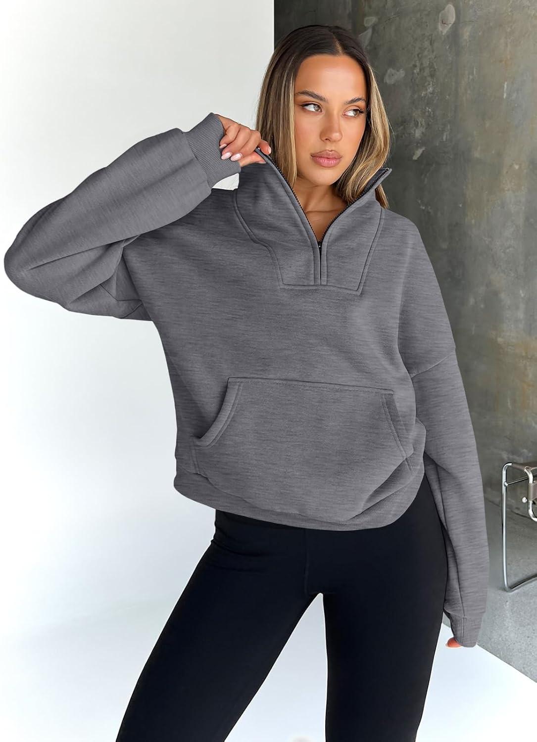 Trendy Queen Womens Sweatshirts Quarter Half Zip Pullover Oversized Hoodies Fall Fashion 2025 Winter Fleece Jackets Sweaters(Darkgrey)