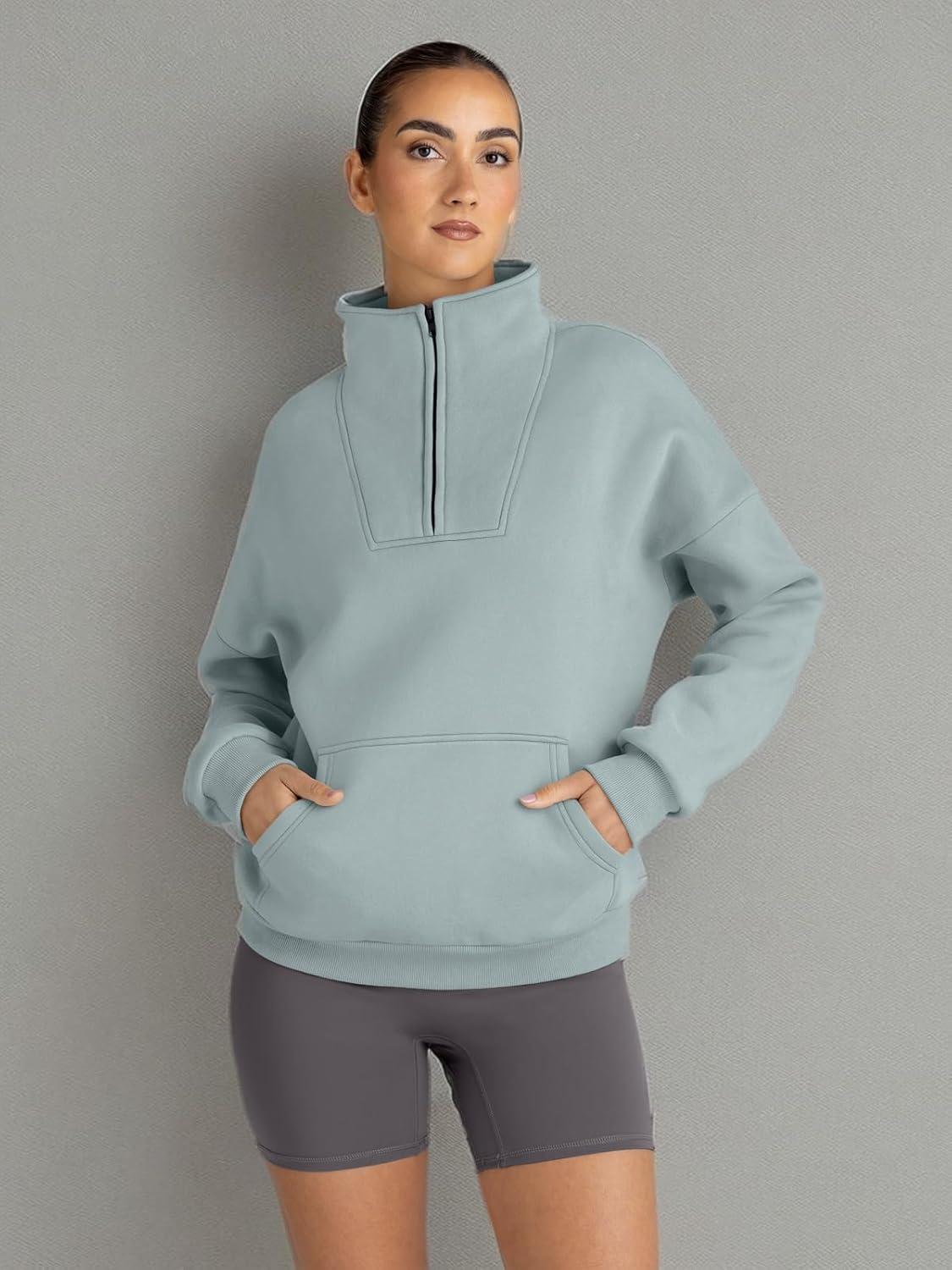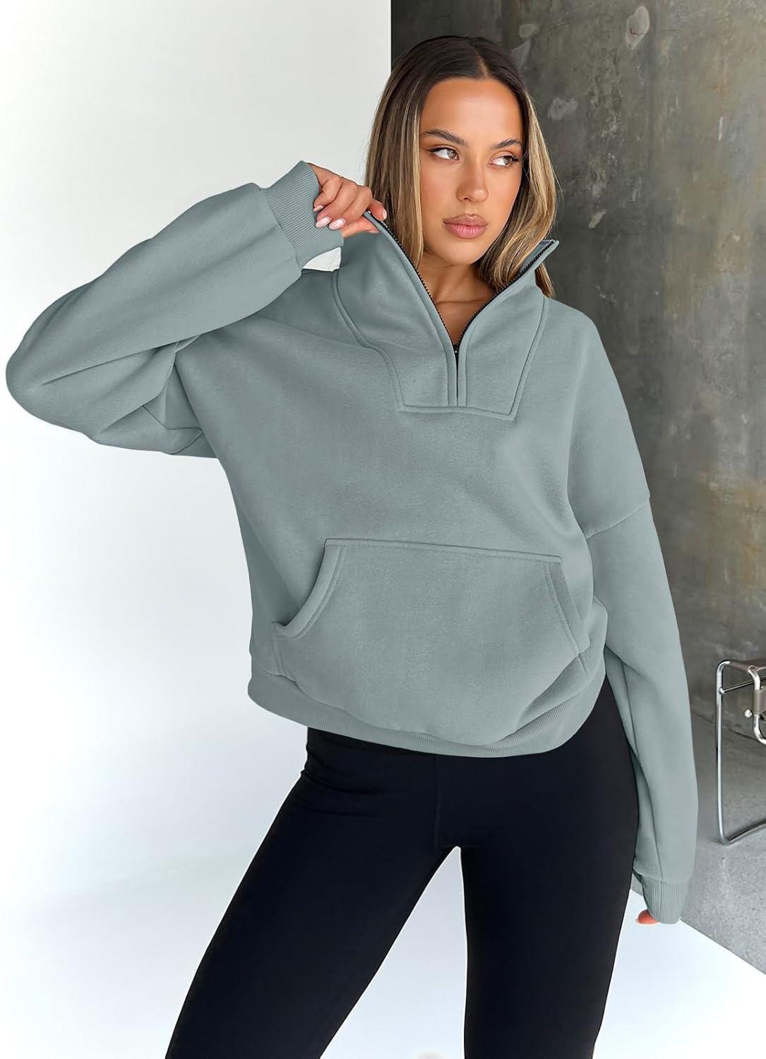 Trendy Queen Womens Sweatshirts Quarter Half Zip Pullover Oversized Hoodies Fall Fashion 2025 Winter Fleece Jackets Sweaters(Light Green)