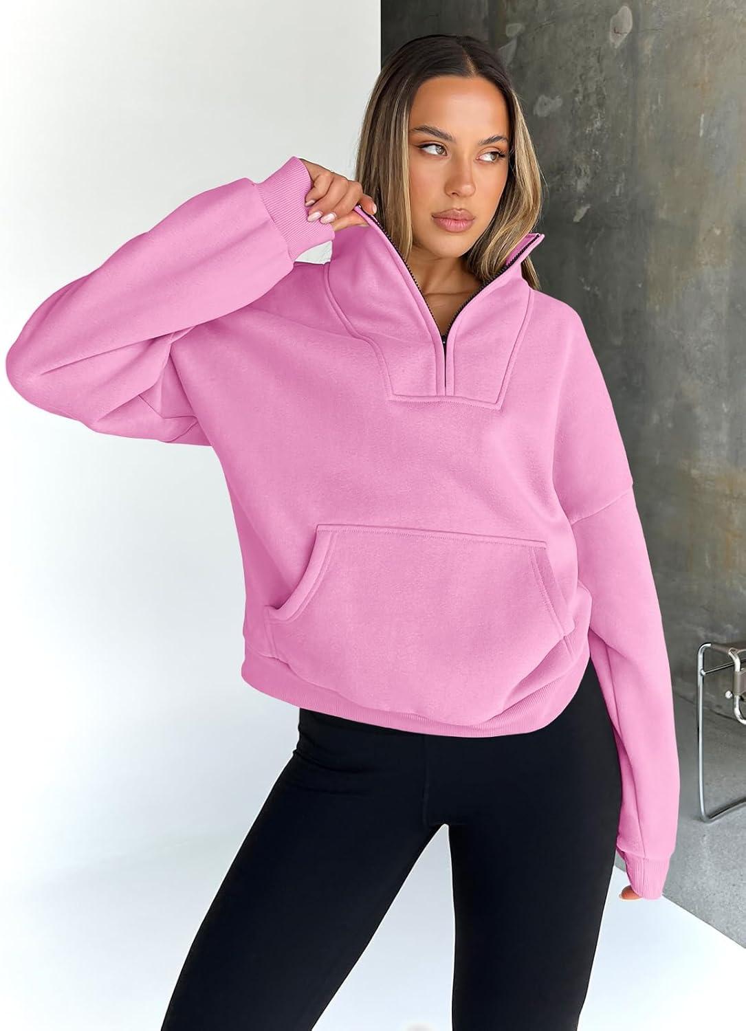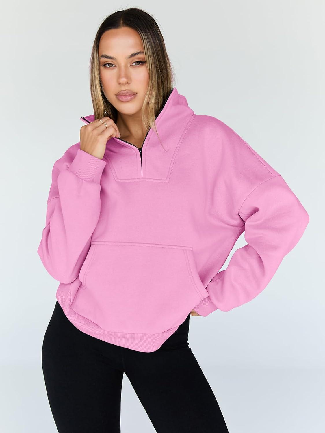 Trendy Queen Womens Sweatshirts Quarter Half Zip Pullover Oversized Hoodies Fall Fashion 2025 Winter Fleece Jackets Sweaters(Pink)