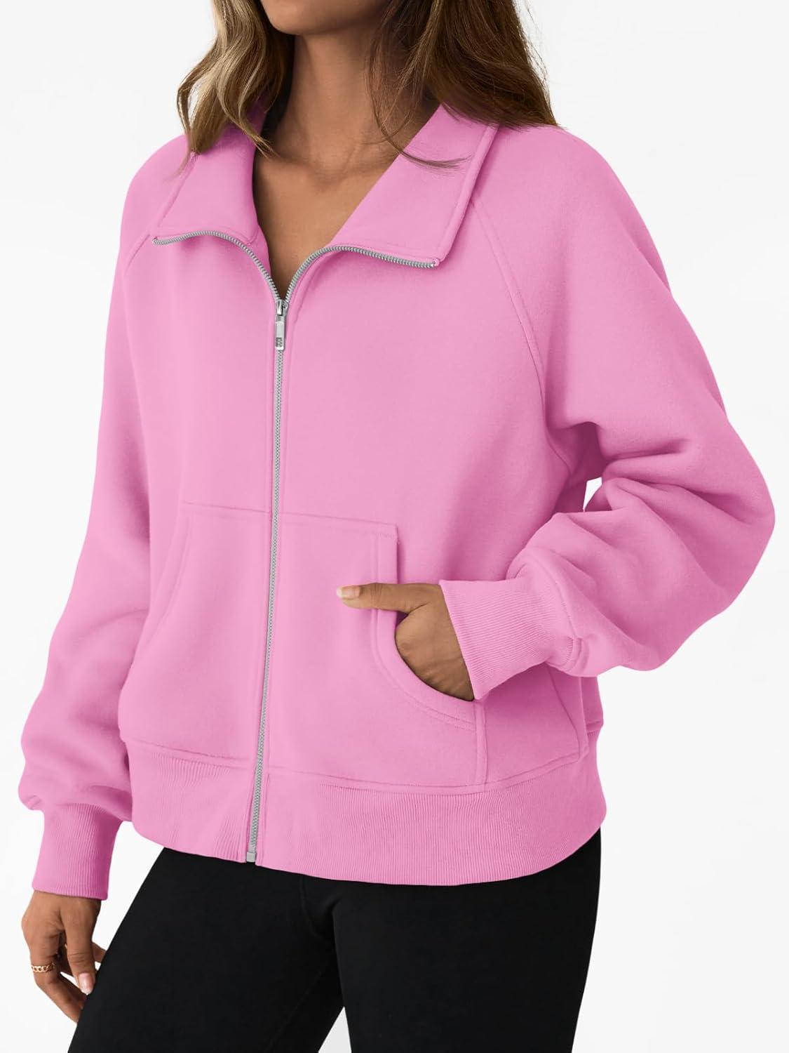 Trendy Queen Womens Sweatshirts Zip Up Hoodies Cropped Crewneck Pullover Casual Jackets Y2k Clothes Fall Fashion Outfits 2025(Pink)
