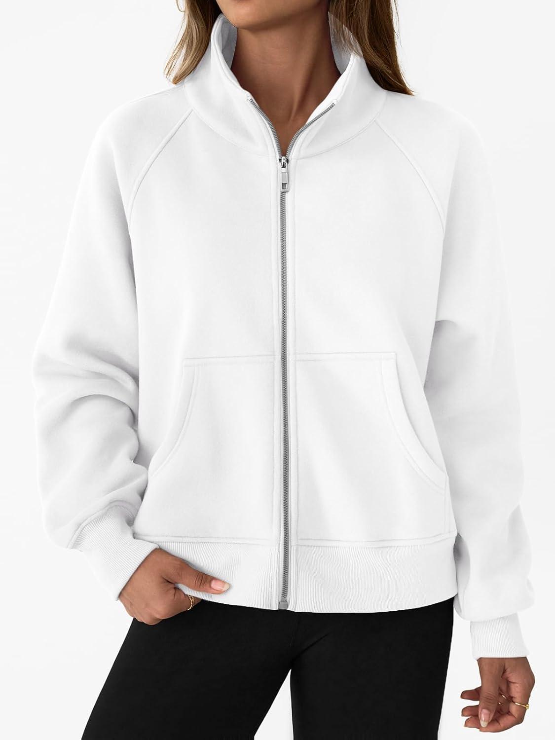 Trendy Queen Womens Sweatshirts Zip Up Hoodies Cropped Crewneck Pullover Casual Jackets Y2k Clothes Fall Fashion Outfits 2025(White)