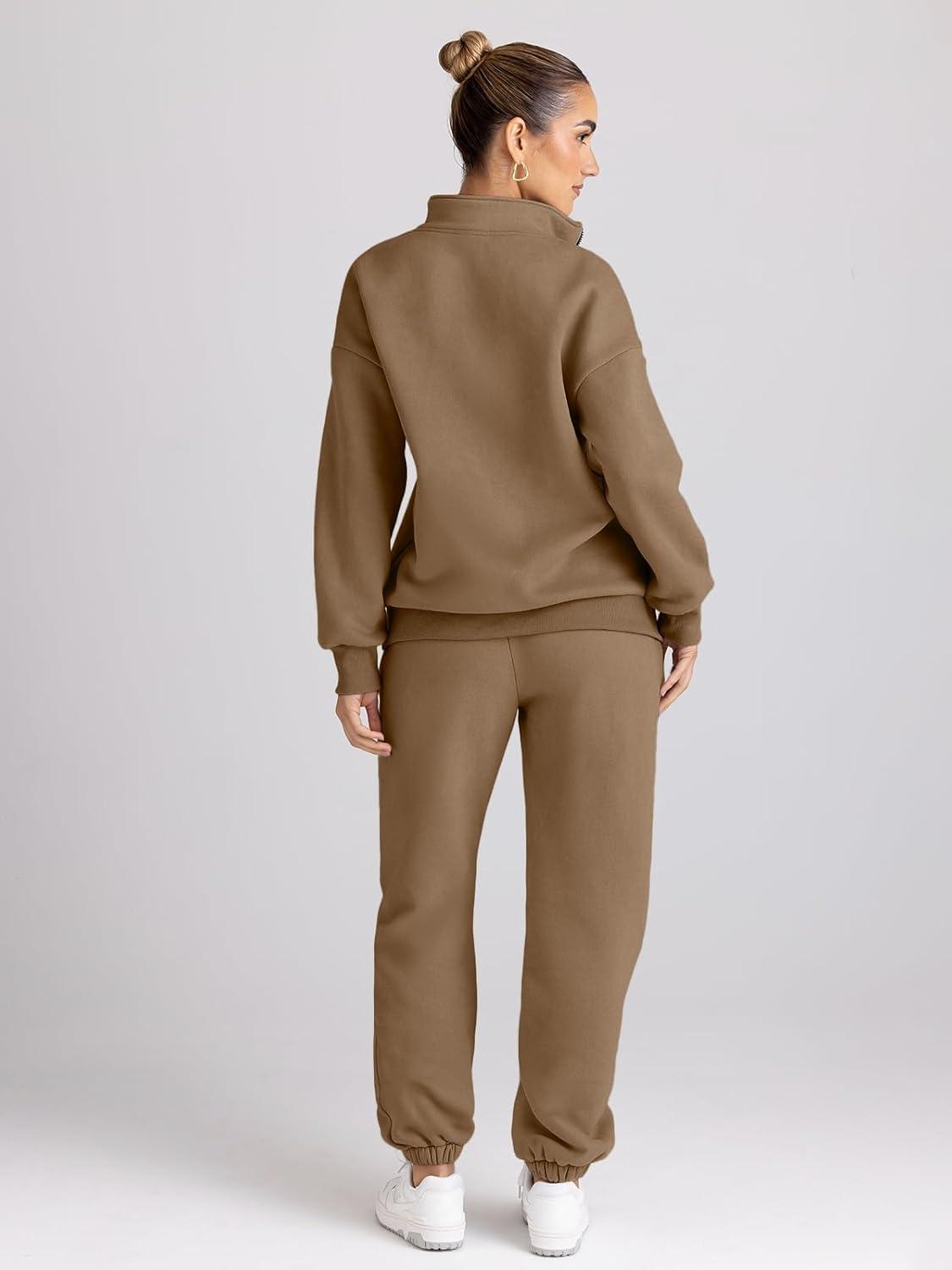 Trendy Queen Womens Sweatsuits 2 Piece Outfits Fall Lounge Sweat Sets Half Zip Sweatshirts with Baggy Sweatpants(Coffee)