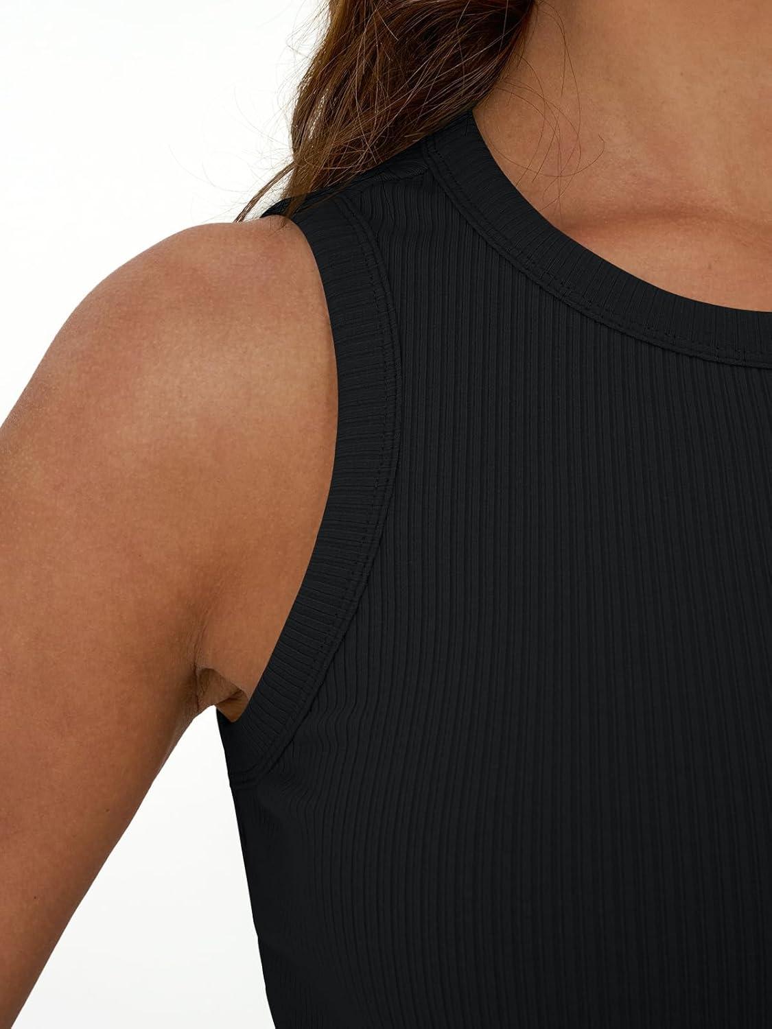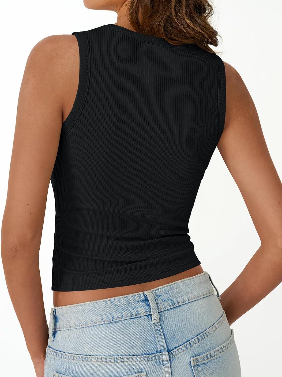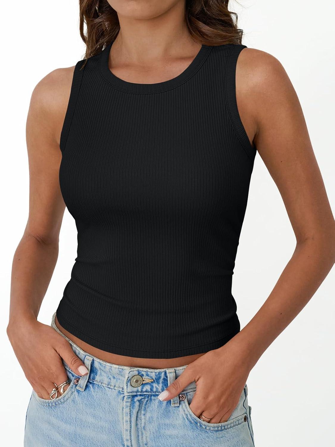 Trendy Queen Womens Tank Tops Summer Fashion 2025 Workout Ribbed Sleeveless High Neck Beach Vacation Oufits Clothes(Black)