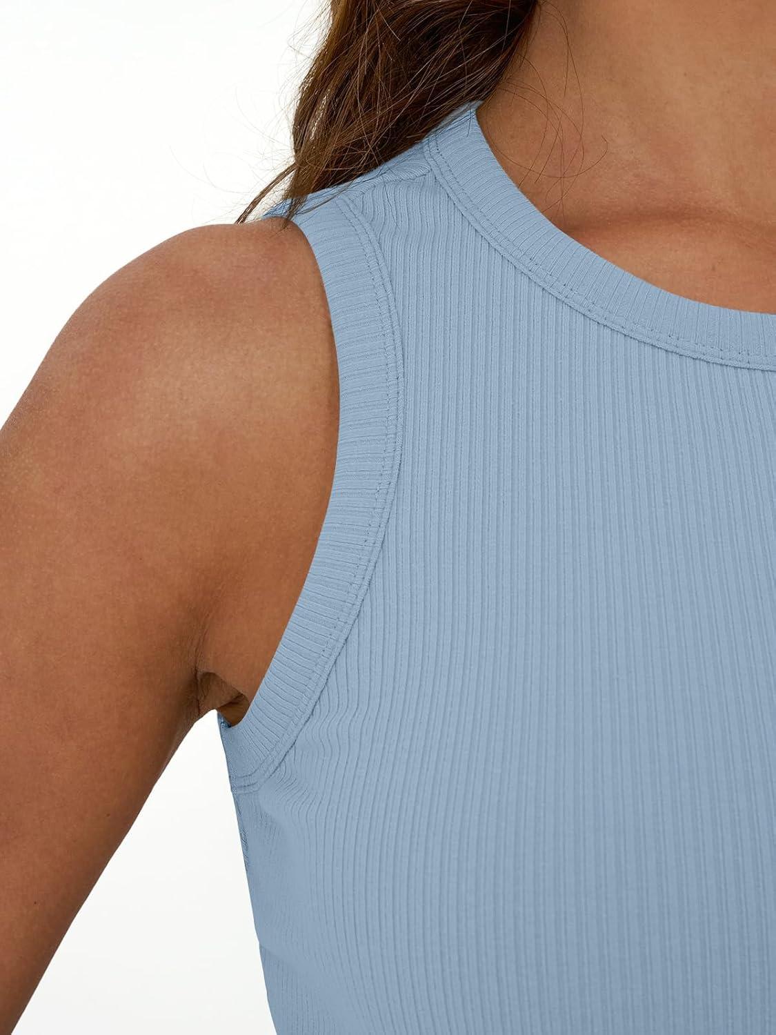 Trendy Queen Womens Tank Tops Summer Fashion 2025 Workout Ribbed Sleeveless High Neck Beach Vacation Oufits Clothes(Blue)