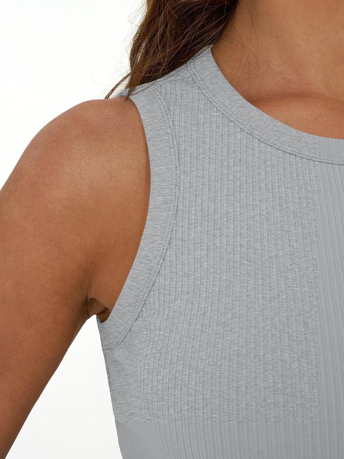 Trendy Queen Womens Tank Tops Summer Fashion 2025 Workout Ribbed Sleeveless High Neck Beach Vacation Oufits Clothes(Grey)