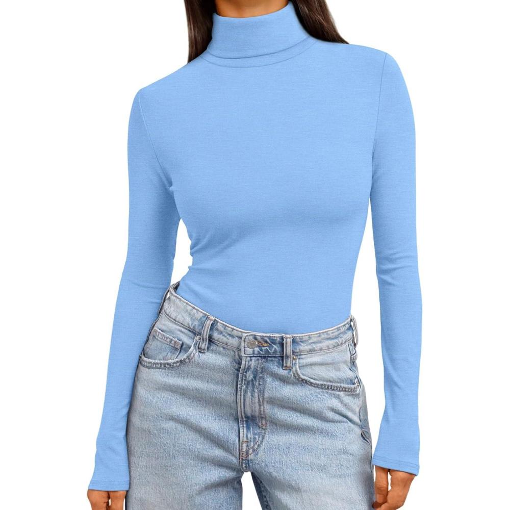 Trendy Queen Women’s Turtleneck Long Sleeve Shirts Fall Fashion Basic Thermal Underwear Tops Winter Clothes 2025(Baby Blue)